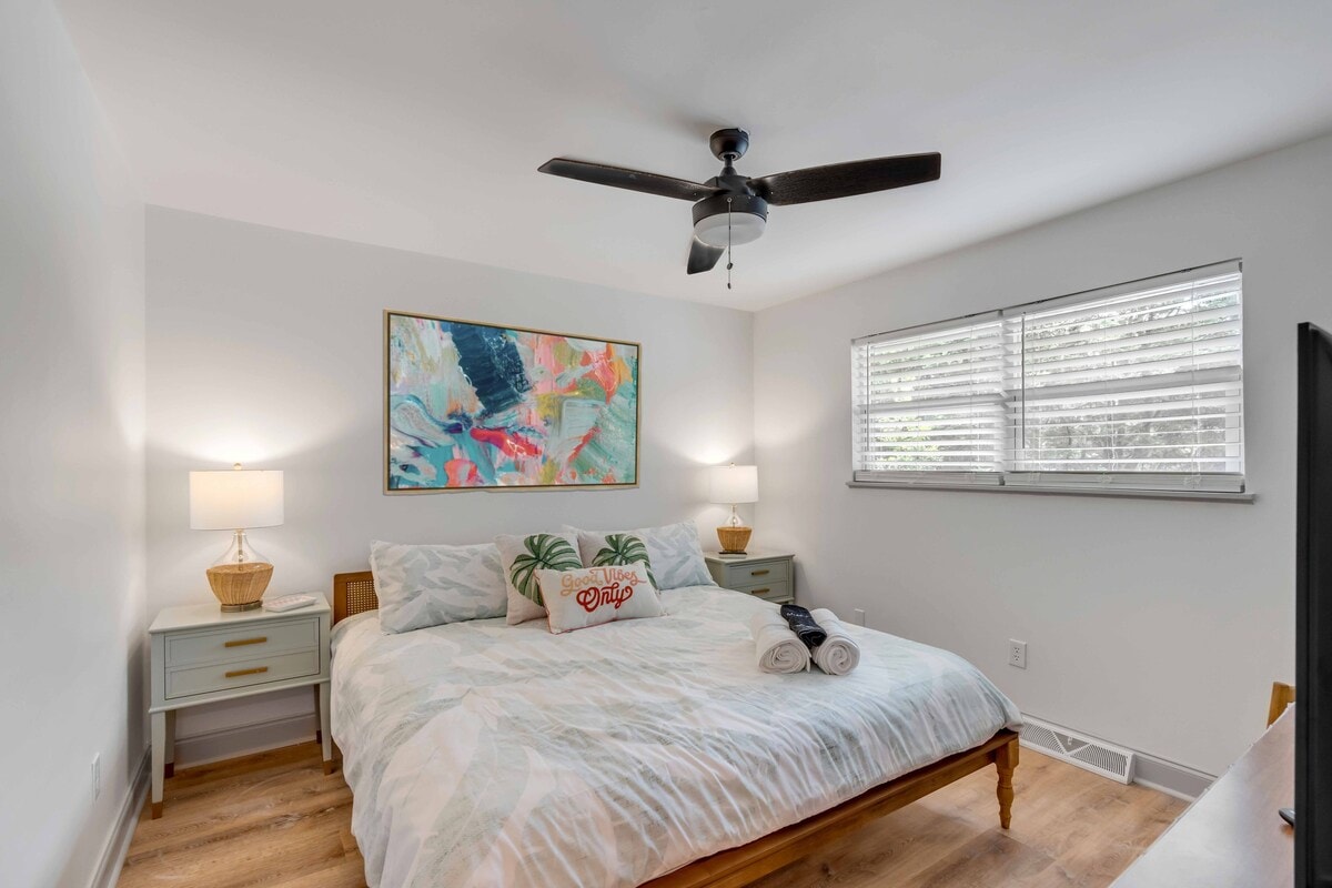 Light and casual feel with a nautical decor. The den and kitchen have vaulted ceilings with exposed beams that give it a rustic charm. The screen porch is a wonderful place to start your morning and to end your busy day. Very quiet, safe residential neighborhood. Plenty of off-street parking. Perfect for couples and families for a relaxing getaway or activity-filled vacation. STR Permit No: ST250302 MP Bus license 20108727