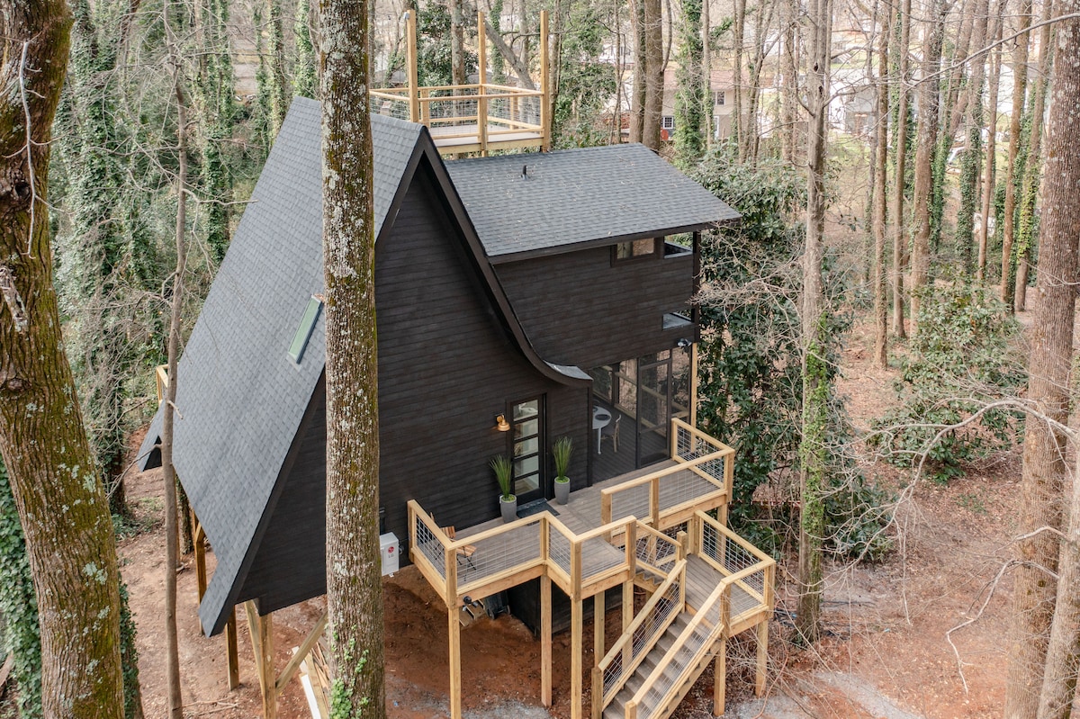 Situated at the back of a wooded 2 acre lot, only 10 minutes from downtown Greenville, this is a little oasis in the city! While most treehouses take you on a "roughing it" adventure, Cozy Treehouse is the glamping version of treehouses, boasting 9' ceilings, 1.5 baths, 3 LED TV's and many outdoor living options. If you are looking for a unique getaway just minutes from one of the top growing cities in the south, Cozy Treehouse is the perfect destination for you.