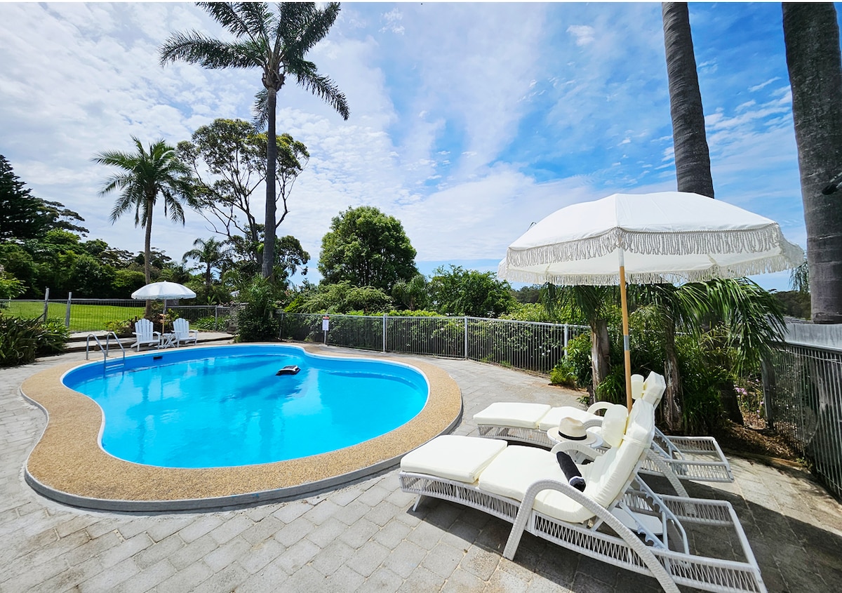This spacious Queen Studio apartment has glimpses of the ocean from its patio, comfortable living area with kitchenette and dining area. Guests have full use of the pool and BBQ facilities. All linen provided, apartment serviced daily. The apartment is well positioned to Mollymook Beach, Golf courses as well as the lovely town of Milton and Ulladulla. We are close to wonderful restaurants and we offer a courtesy drop off to your event. We welcome children over the age of 10 years.