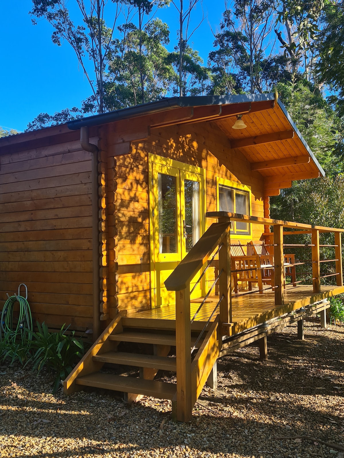 Reconnect with nature. Backing onto the state forest, this unique tiny house stay gives you the best of both worlds. The little things is situated on 3 acres overlooking a duck filled dam, kangaroos and native birds, yet just a stones throw away from town and local beaches. We are FULLY OFF GRID & ECO FRIENDLY ❤️ Complimentary Breakfast hamper enjoyed on the verandah, movie projector for rainy days & fire tub bath under the stars at night 7 VELUX skylights and King bed….. enjoy THE LITTLE THINGS