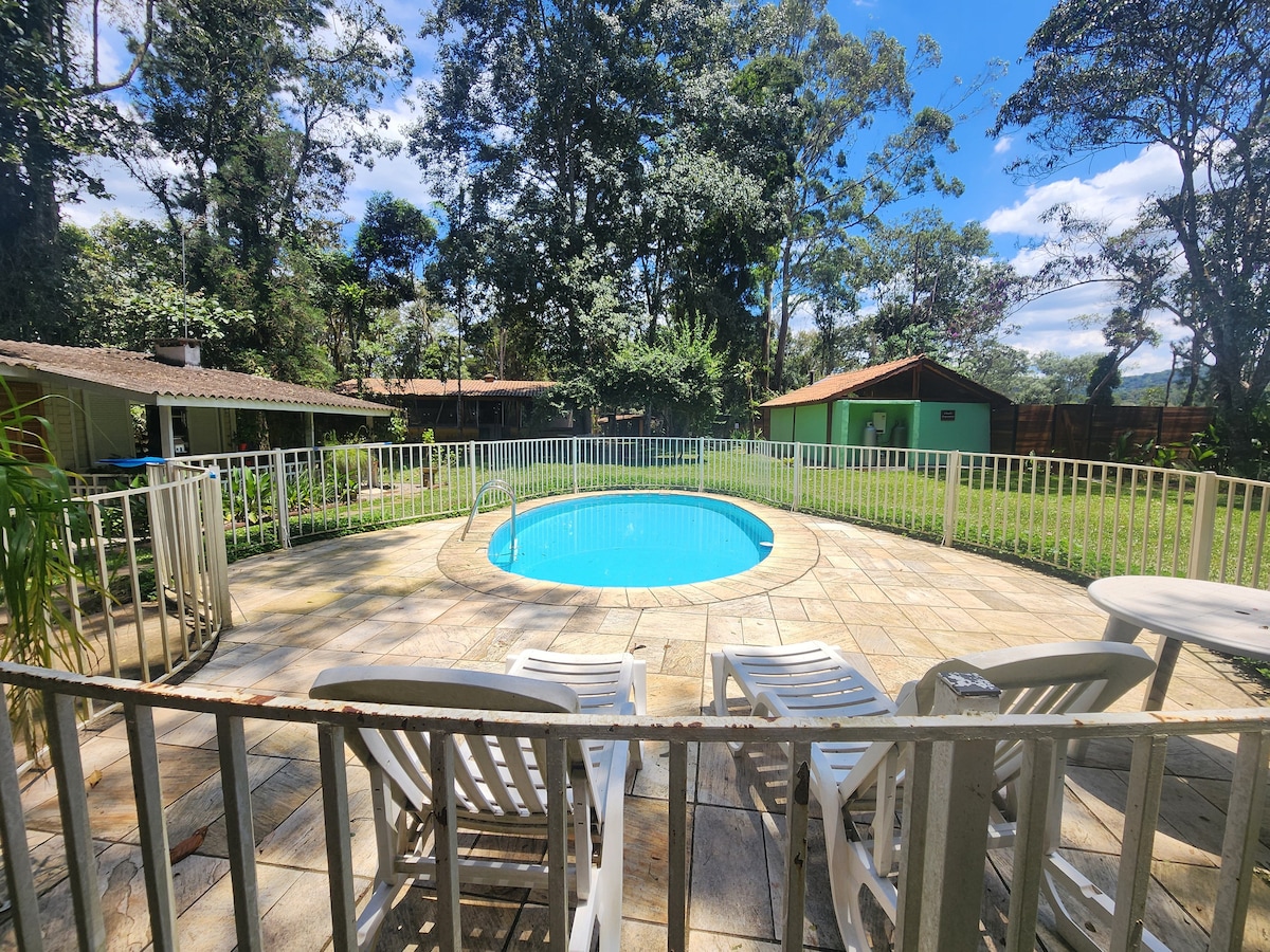 Colecione memórias e reconecte com a Floresta. Cabana ideal para descanso e lazer em Juquitiba cercado pela Mata Atlântica. Piscina e área de esportes. Redódromo. Espaço gourmet e área para fogueira, trilhas na mata. Piscina natural exclusiva no meio da floresta. Represas, rafting e cachoeiras na proximidade. Playground para crianças. Fácil acesso - 2 km da rodovia. Pet Friendly. Seguro e acolhedor para LGBTQI+. Wifi no sítio. Café da manhã simples caseiro aos finais de semana e feriados.