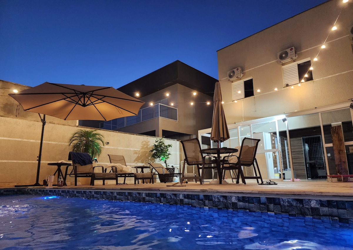 带温水泳池、2个停车位和美食阳台的公寓