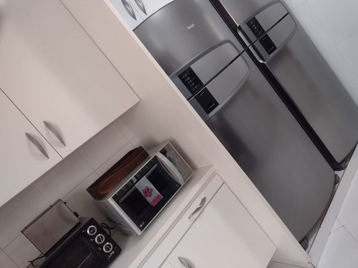 Apartment 1808 is simply amazing! It has a panoramic view on the 18th floor, a glazed balcony perfect for staying with children, in addition to having 2 bedrooms, 1 with a double bed and the other bedroom with a bunk bed with auxiliary, perfect to accommodate a family of up to 5 people. Small and medium-sized dogs weighing up to 15 kg are accepted for an additional fee of R$ 120.00. Cats are not accepted. AIR CONDITIONING ON THE BALCONY DOESN'T WORK THERE IS A FAN