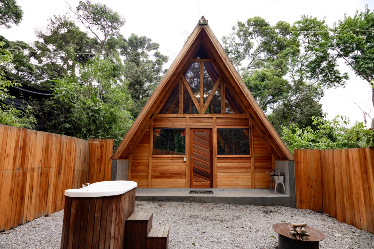 Que tal viver uma experiência de hospedagem única? Aqui na Cabana Rústica cada detalhe foi cuidadosamente pensado para que tenha uma experiência inesquecível em casal. - Janelas panorâmicas - Lago de pedras; - Rede náutica e rede de descanso - Lareira externa - Cama Queen Size - SmartTV - Ar-condicionado - Som Bluetooth - Banheiro com teto panorâmico - Banheira - Cozinha integrada - Wi-Fi de alta velocidade.