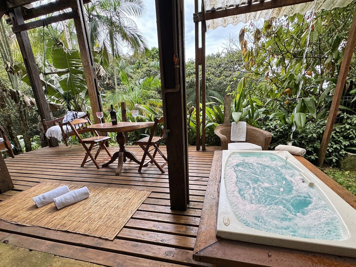 Que tal viver uma experiência de hospedagem única? Aqui na Cabana Rústica cada detalhe foi cuidadosamente pensado para que tenha uma experiência inesquecível em casal. - Janelas panorâmicas - Lago de pedras; - Rede náutica e rede de descanso - Lareira externa - Cama Queen Size - SmartTV - Ar-condicionado - Som Bluetooth - Banheiro com teto panorâmico - Banheira - Cozinha integrada - Wi-Fi de alta velocidade.
