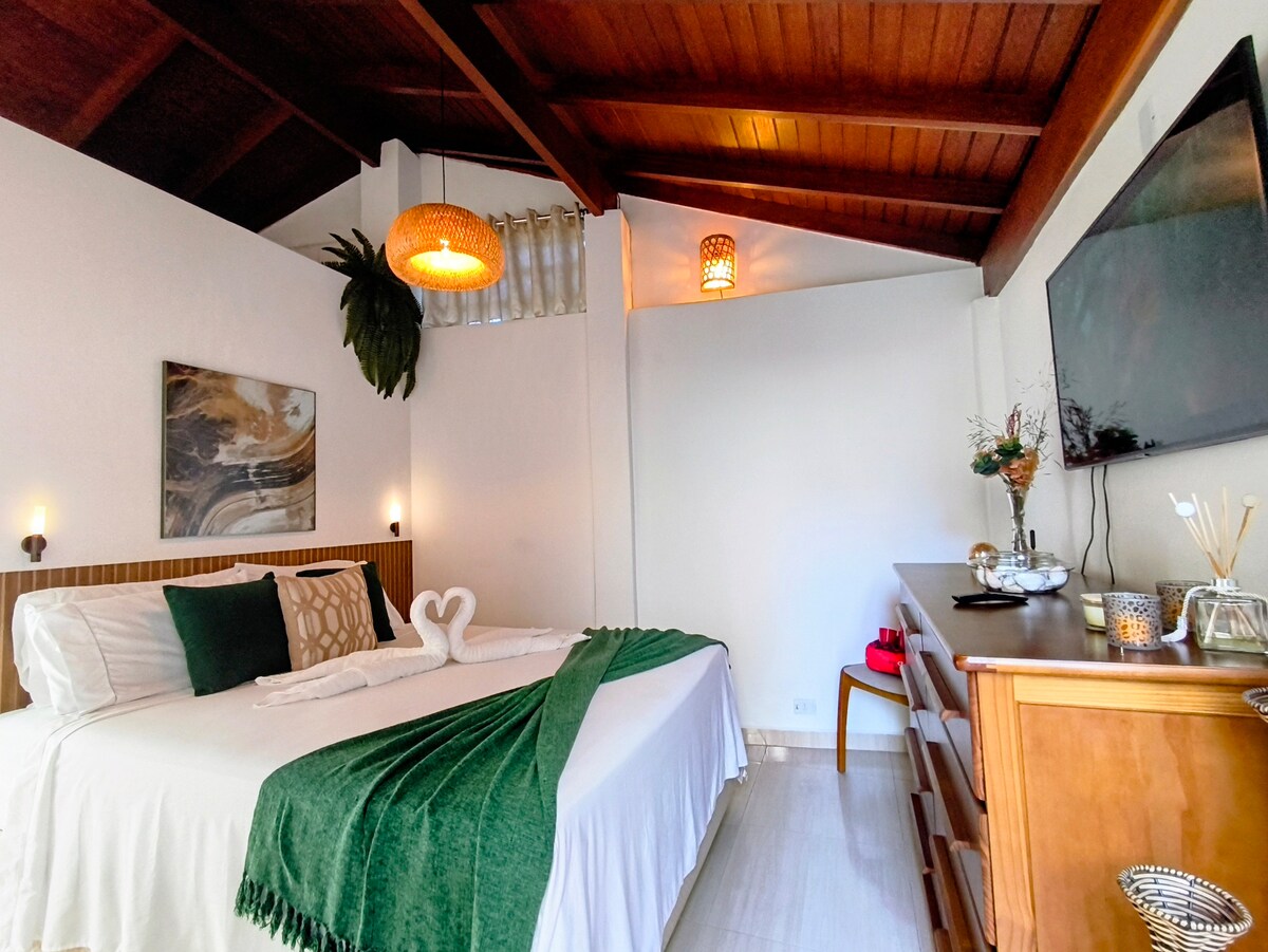 Relaxe neste espaço calmo e cheio de estilo. Preparamos uma casa para recebê-lo com muito conforto e charme. Desfrute do clima ameno das montanhas de Piedade, tomando um vinho no deck e admirando o verde ao redor. Relaxe na sala de estar com nossa lareira. Deguste no Wine Bar exclusivo. Aqui você também terá acesso a um mini spa, com ofurô e sauna úmida. Dias quentes pedem uma piscina ou aquele ar condicionado para dormir. Aproveite e curta seu dia e sua privacidade!