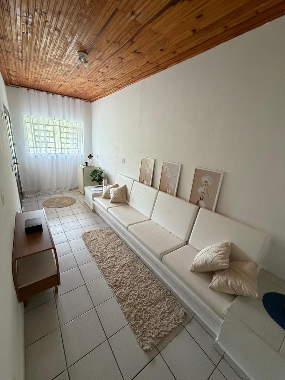 apt3 suíte arco-íris cinco minutos da praia a pé cama de casal um sofá de dois lugares colchão para duas a três pessoas televisão ventilador wi-fi lençóis cobertor fica dentro do centro de São Vicente perto de tudo de shopping praia da Biquinha e várias outras uma lado da outra