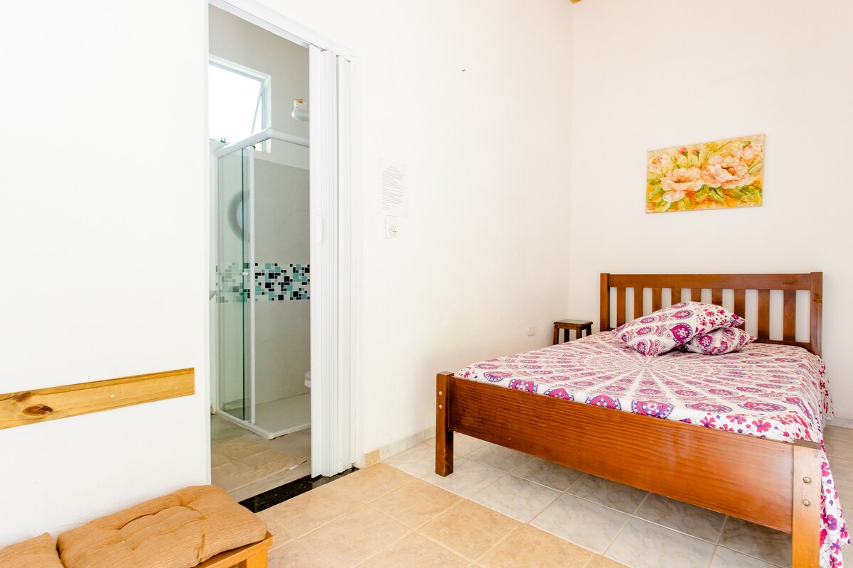 Suite de casal com varanda e vista para o canal de Bertioga, aconchegante, em meio a natureza, ideal para quem quer descansar longe do movimento das cidades, fazer trilhas, pescar, surfar e desfrutar do melhor que a natureza oferece. Localizada na Prainha Branca é equipada com cama de casal, ventilador, frigobar, banheiro e roupa de cama e banho. Podemos fornecer um colchão de solteiro quando necessário.
