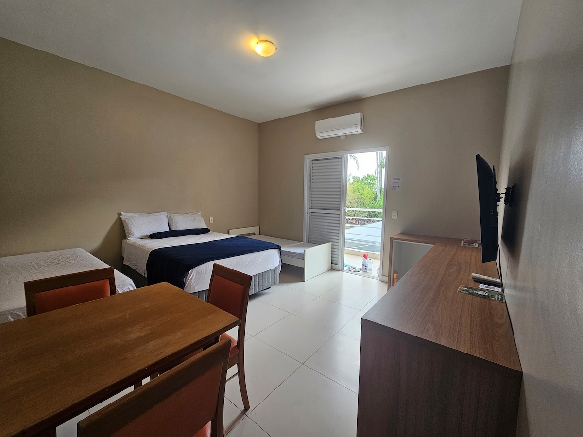 Suite privada 16m² acomoda 4 pessoas com 1 cama de casal e 1 beliche, frigobar, ar condicionado, cooktop, pia, ultencilios basico, tv antena digital, estacionamento em frente a suite com portão individual. OBS. não oferecemos roupa de cama, banho, café da manhã. Somente lençol de elastico para cada cama e travesseiros com fronhas. Aceitamos pet de pequeno porte aos cuidados do tutor é preciso manter ele dentro da suite pq lado de fora não tem divisoria onde fica os carros.