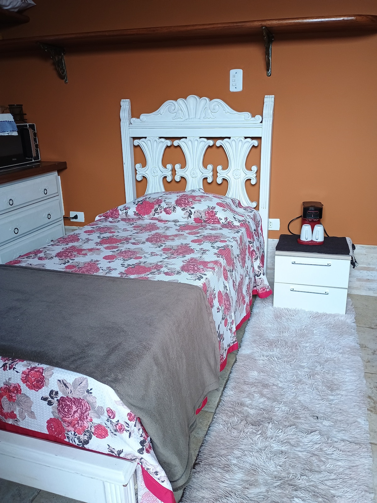 Alugo 3 suítes bem aconchegantes na parte térrea da casa ☺️ *A Suíte 1, tem:* - 1 quarto com 1 cama de casal e 1 cama de solteiro; - Cozinha com 1 cama de solteiro; - Banheiro. A Suíte 1 é geminada com a Suíte 2, ou seja, as duas suítes estão lado a lado na parte térrea do sobrado. A porta de acesso da Suíte 1 fica na lateral da casa, em madeira (foto da casa – lado direito). O corredor do lado esquerdo dá acesso às outras suítes e à minha casa, onde resido na parte superior do sobrado.