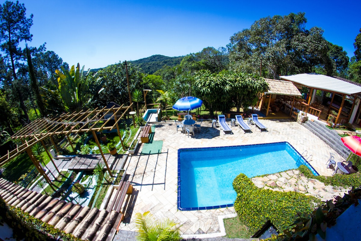 Venha curtir dias incríveis no Sítio Toca da Sôla! 🌿 Perfeito para grupos, famílias, eventos e day use. Espaço de alto padrão em Juquitiba, a 70 km de São Paulo, em meio à Mata Atlântica. Piscina, sauna, salão de jogos, danceteria, parquinho, espaço gourmet com forno e fogão a lenha, mini conveniência, igrejinha, área de fogueira e 6 suítes confortáveis esperam por você!