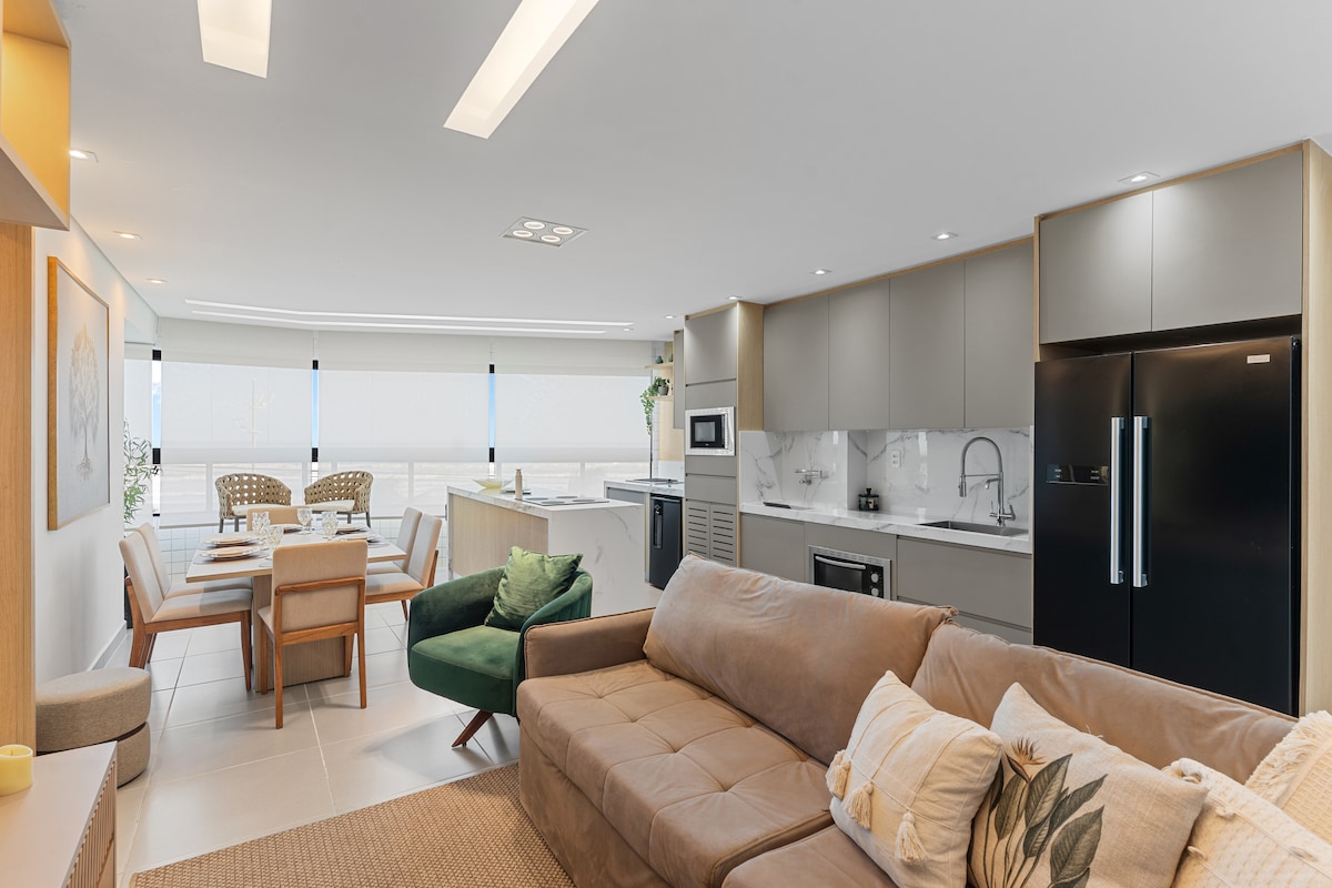 Um apto compacto, mas que acomoda muito bem até quatro pessoas, duas na cama de casal e duas no colchão extra, além de termos um sofá cama, uma ótima TV Smart, wi-fi, cafeteira Nespresso, cooktop de indução, lava louças, máquina de lavar e secadora de roupas para você ter tempo de sobra para curtir a praia bem em frente que é ótima ou passear pela cidade!