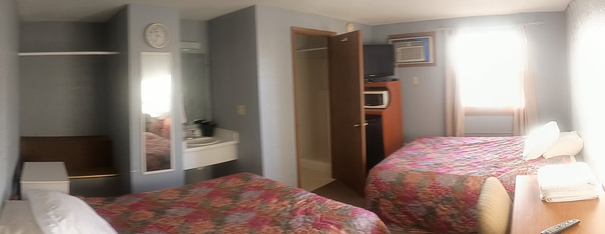 Stay in the center of the action in this one-of-a-kind place, with some of the best fishing and hunting in the state within just a short drive away in all directions! This unit is one of 4 units located within the Roslyn Mini Mall, along with Schmidt’ Custom Meats (a custom meat shop and grocery store) and Community Oil (a tire/ vehicle repair and maintenance shop). This room is a “hotel style” room that includes 1 queen and 4 twin beds and a kitchenette, private bathroom/shower.