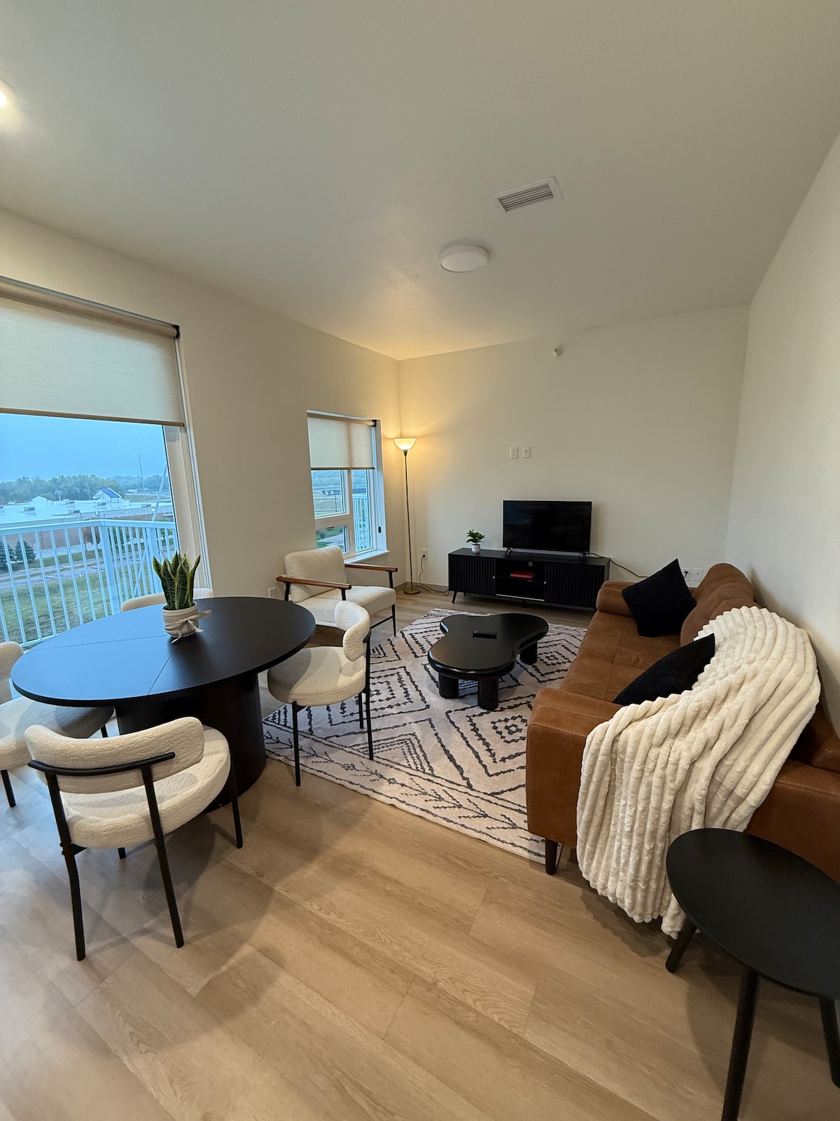 This lovely suite is perfect for a traveling professional, couple, or small family! It includes one bedroom, kitchen, dining area, breakfast bar, large bathroom, large living area, and a full kitchen for the cooking enthusiast! Additional amenities include WI-FI, bed and bath linens, portable crib upon request, and private keyless entry. The home is located in a quiet, safe neighborhood with spectacular views!