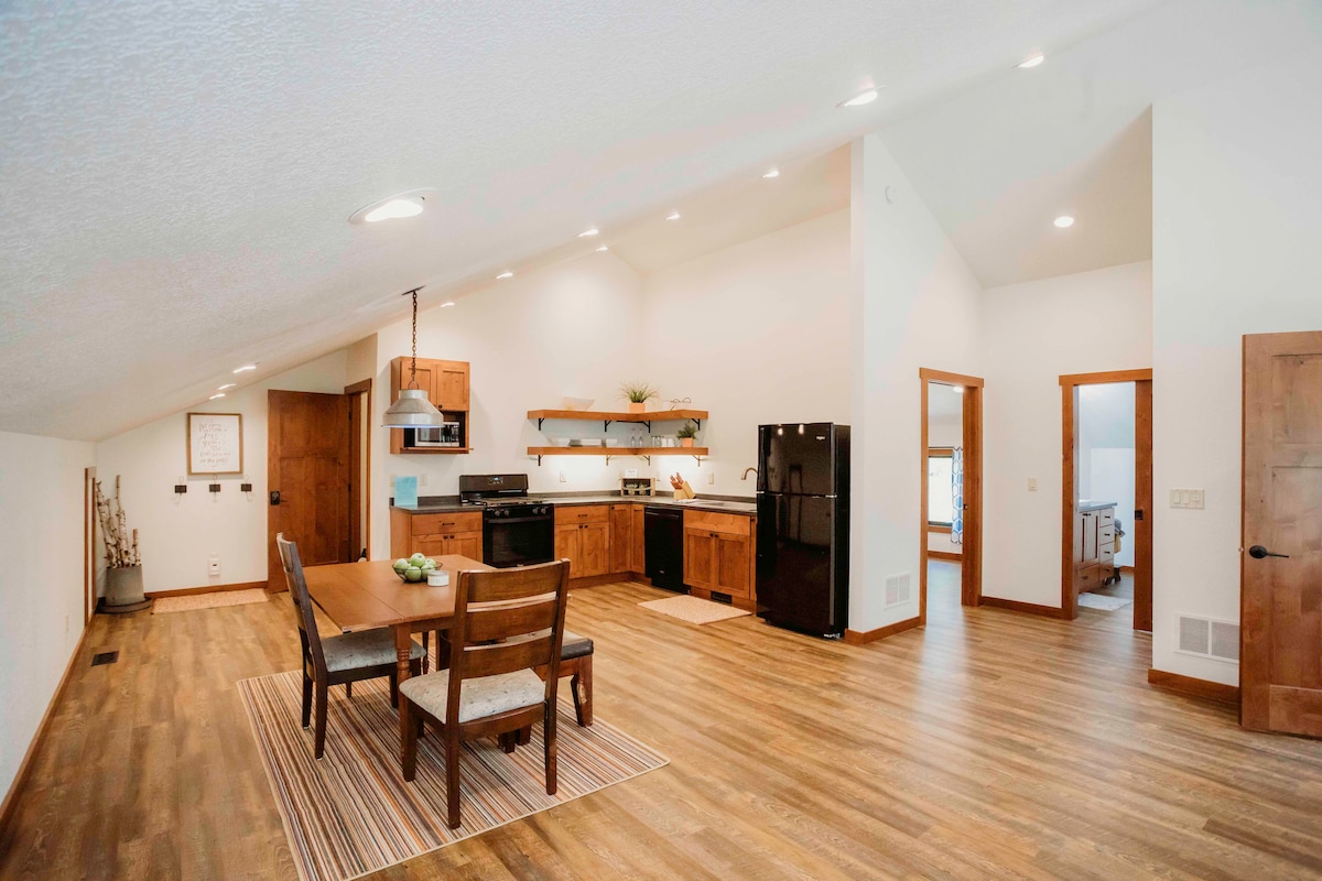 Keep it simple at this peaceful and centrally-located guest suite. Located half a mile from downtown, this unit has it all! Enjoy your coffee with a view of the incredible Black Hills and the winding Spearfish Creek below. This guest unit overlooks the Spearfish city park campground and recreation paths. This guest suite is the lower level of our home and has no shared indoor spaces. Outside you’ll be greeted with beautiful views and a shared hot tub for an unmatched in town experience.