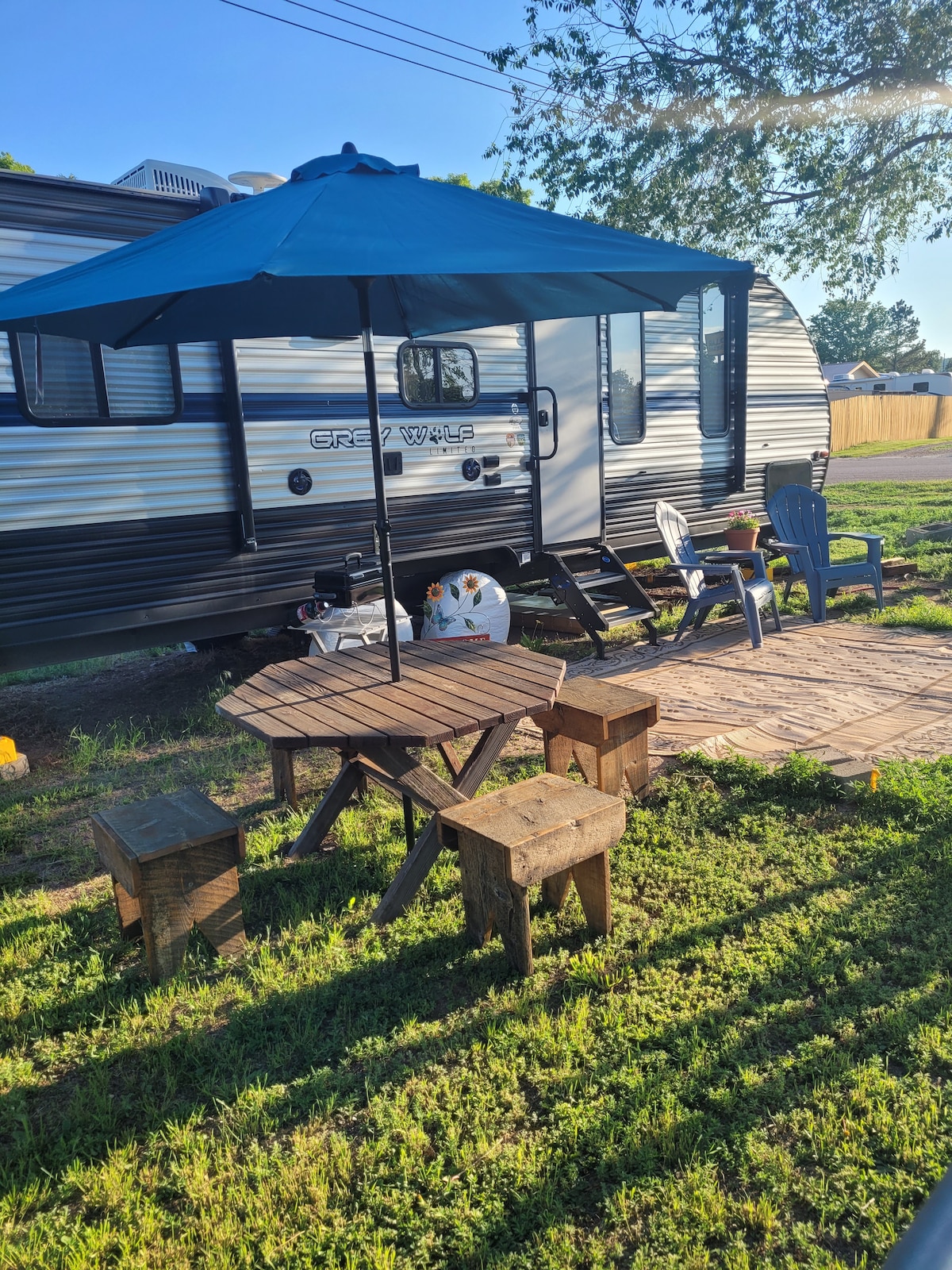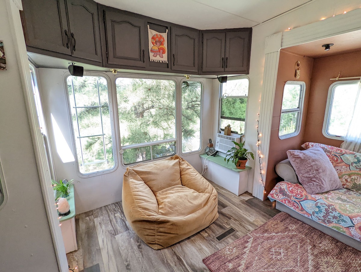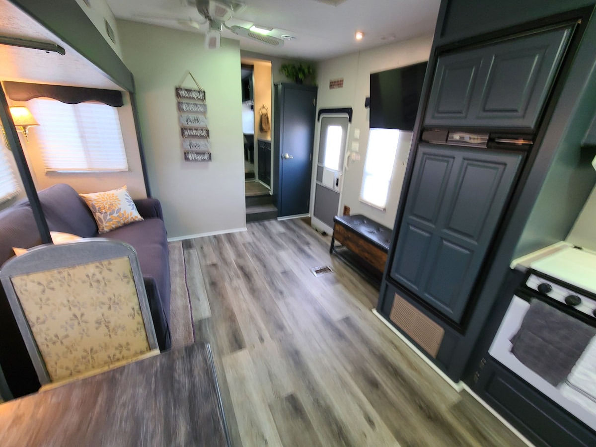 **Outdoor improvements for the 2023 season, fire pit, Pictures are live now (fire wood is included as part of the stay)! Reconnect with nature at this cozy camper out in the Black Hills of South Dakota. Equipped with all of the most wanted amenities to make it feel like home. This fifth wheel camper is 32 ft long with 2 big slide outs, making it very spacious inside. It has a queen bed in the main bedroom as well as a full size pullout bed in the living room.