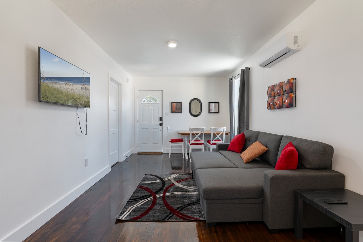 20 feet from the Ocean Center parking lot, 1 block to the beach (3-5 min walk), boardwalk & Main Street! Whether you’re in town for business, a convention at the Ocean Center or coming to enjoy the beach, our home is perfectly suited for all types! Bring your bathing suit & flip flops, we have taken care of the rest! 1 Block to Main Street for Bike Week & Biketoberfest! Daytona International Speedway is only 10 mins away! (4 miles) Disney World & Universal Studios are 1hr & 15mins away!