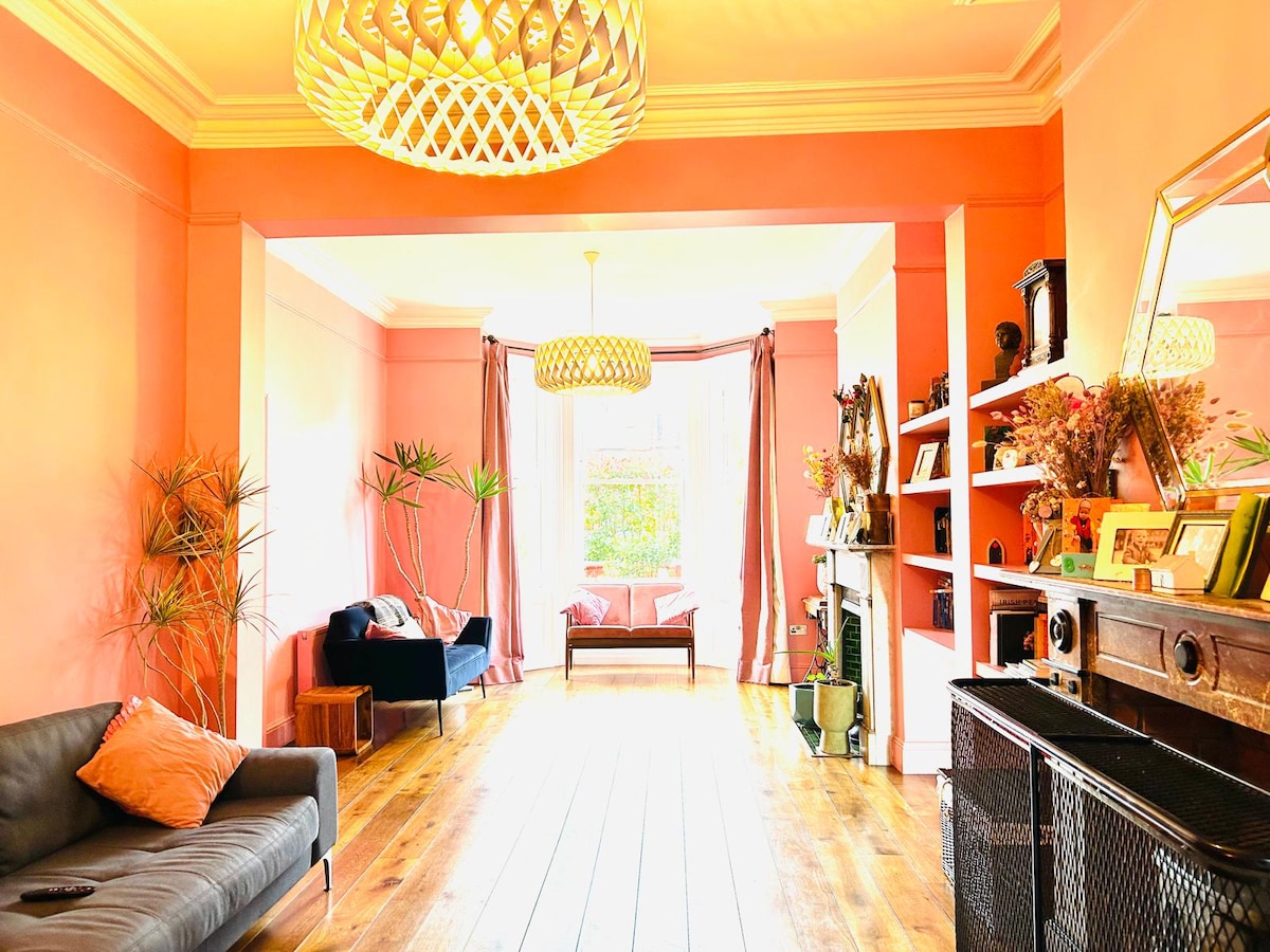Peaceful oasis in bustling Dublin City. Fully renovated open-plan red brick townhouse in a quiet neighbourhood. Furnished with carefully considered mid century furniture with a touch of industrial interior and contrasting dark and moody accents.