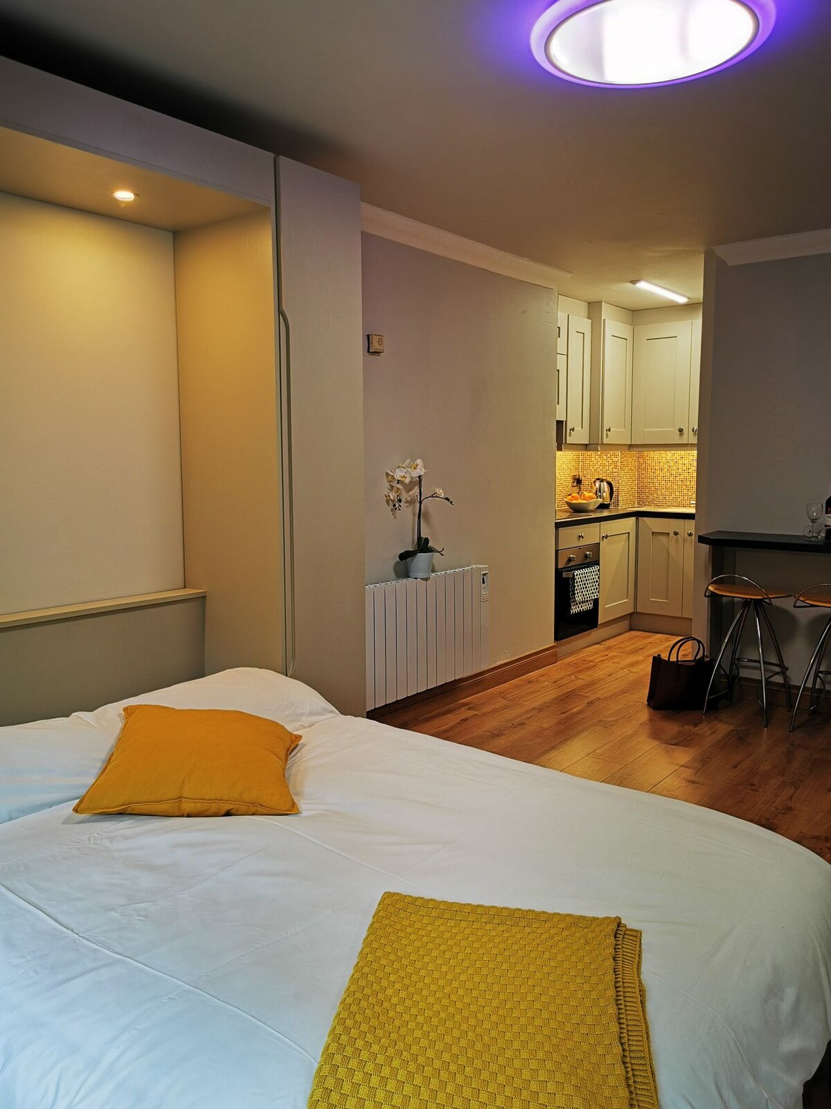 this charming, modern, one bedroom home is an independent unit with unique entrance wall art, own front door, private bike/storage yard, 1st floor roof terrace w/ porch area & cat flap incl. summer awning, patio heater and privacy screen an abundance of amenities on the doorstep - all manner of shops, pubs, bars, music venues, eateries and Michelin fine dining. right next to the City Centre + 15/20min stroll to Charlemont Luas Station, Rathmines, Ranelagh and the Grafton Quarter