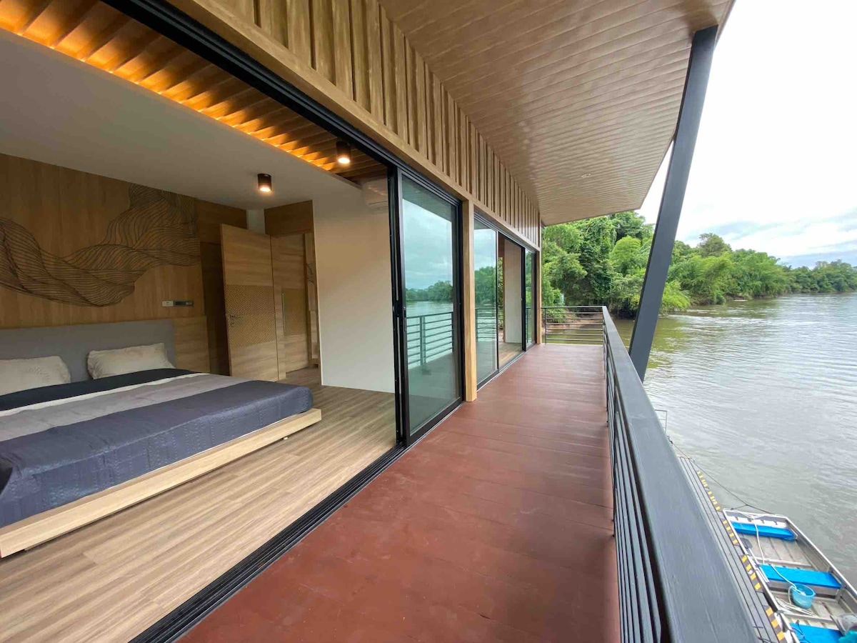 16 mins to Erawan waterfall - Reconnect with nature at this unforgettable escape. This Kwai riverfront houseboat brings some feelings of home with its homie and cozy décor. The perfect place to relax and soak in some sun rays through the waterfront terrace. There are loads of other ways to enjoy the river here too with the kayaks available.
