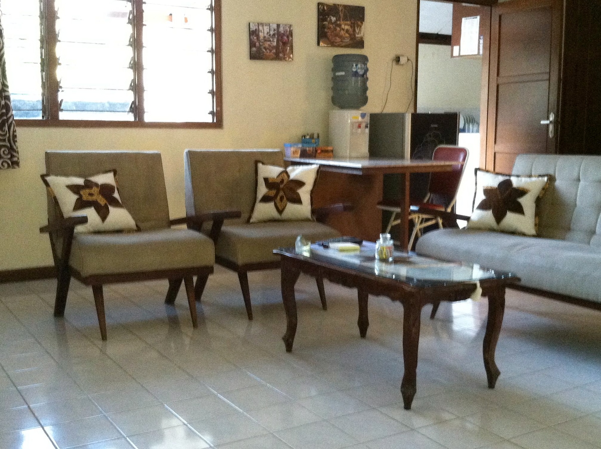 Homestay ini sangat tenang meskipun berada di tempat yang sangat strategis karena mempunyai akses jalan lebar milik sendiri dari jalan utama. Lokasi di pusat kota tetapi bukan di daerah macet, memudahkan bepergian ke tempat-tempat yang dituju tanpa macet. Terdiri dari 4 kamar masing-masing dilengkapi dengan pendingin ruangan, cocok untuk keluarga kecil yang membutuhkan ketenangan dan akses yang strategis. Dekat dengan tempat makan, alfa, indomaret, perhentian bus, pasar tradisional dan kampus.