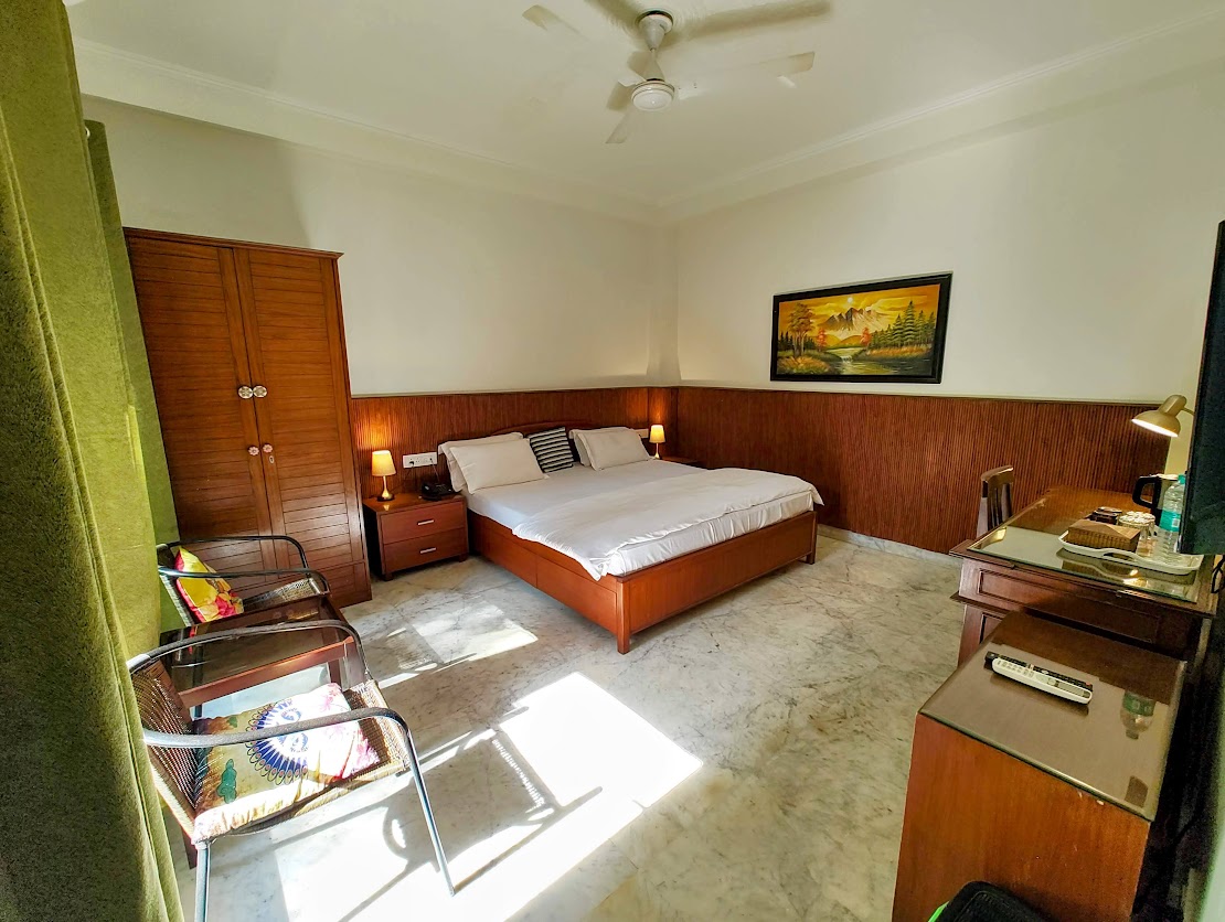 Standard AC room with external adjacent bathroom. This is part of an established bed and breakfast guest house in posh South Delhi, close to embassies, malls, AIIMS and all prominent places of Delhi. You get private AC room with independent entrance. Bathroom is adjacent to the room from outside next to the door, may be shared by 1 or 2 more guests. Breakfast is provided at an extra cost on per plate basis.