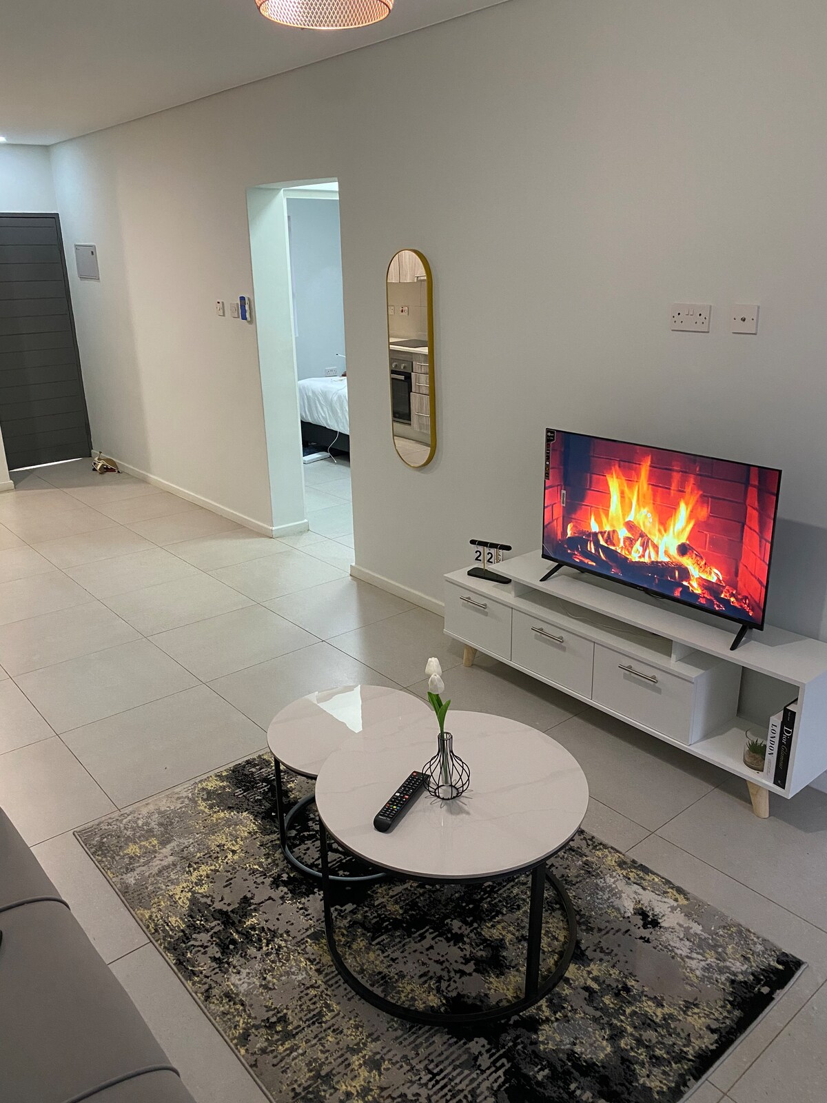This stylish and modern place to stay is perfect for all types of individuals. We do our best to ensure guests have a comfortable and pleasant experience. Apartment is situated very close to shopping and grocery malls. This two-bedroom apartment has the following amenities: WiFi Kitchen cutlery Fridge TV with Netflix, Showmax & YouTube Air conditioning in all rooms Two parking bays Access to Public pool, football court & gym 24 hour Security