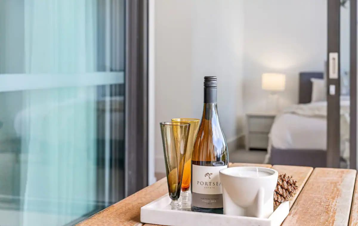 Welcome to Room With A View, a contemporary apartment located moments away from the Dromana Foreshore on the beautiful Mornington Peninsula. This property is perfectly situated to discover local wineries, cafes, market stalls and the infamous Peninsula Hot Springs. A great spot for a romantic getaway! We have now added a sun deck for sun baking, a heated spa which can be used all year round and and a heated swim spa for the Spring and Summer months.