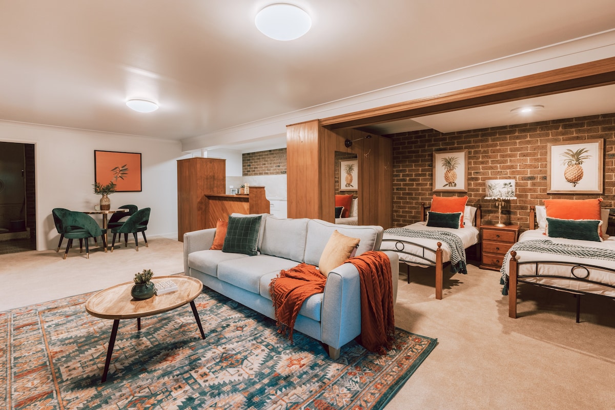 Named for the magnificent maples that grace this beautiful property, The Maples - Loft is one of two luxuriously appointed king bed apartments, perfect for a romantic getaway. The Maples is ideally located to explore on foot the stunning Botanical and Chelsea Australian Gardens, bushwalking trails, quaint shops, cafes and restaurants of Olinda village. Afterwards, enjoy a glass of wine in your private garden, curled by the fire or relaxing in your high back bath. Multiple nights discounted.