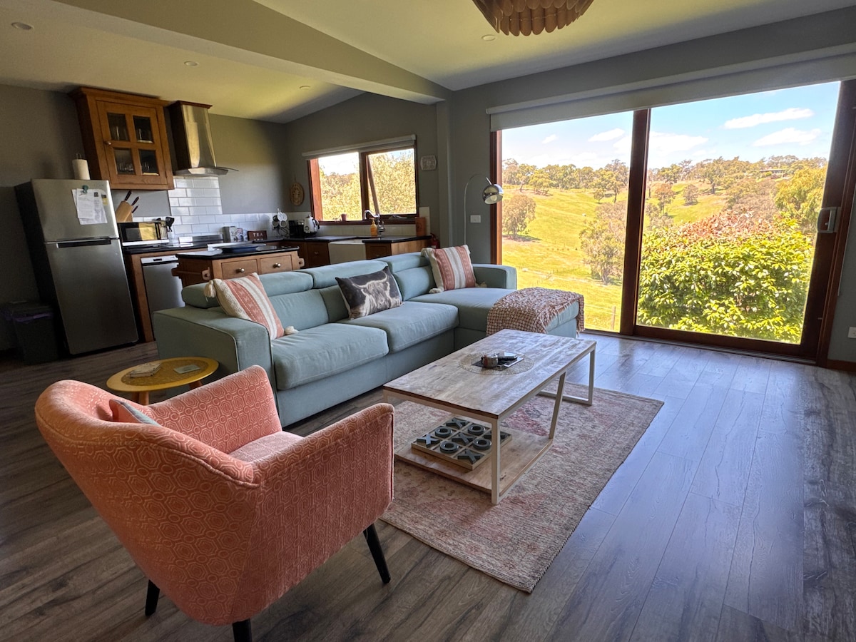 A luxurious & spacious couples retreat with unparalleled panoramic views. Relax in complete privacy knowing that you are the only villa and guests set amongst our olive grove. Set within 1000 + olive trees, the villa overlooks Phillip Island and Westernport Bay and beyond to the Peninsula. With reaching views from every window and complete privacy on offer, the villas luring effect is set to impress any couple escaping the hectic lifestyle demands ensuring a stress free getaway, even romance!