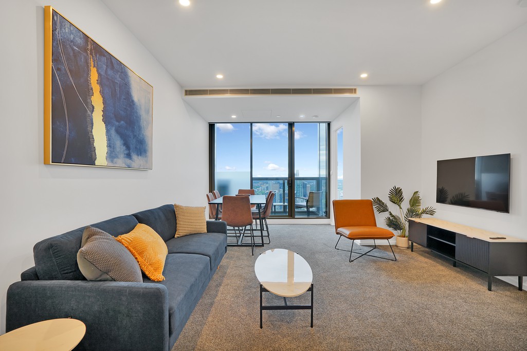 Enjoy a clean, relaxed experience at this centrally located place. Try the top floor! In Melbourne CBD this place really stands out. Phenomenal sunsets! Unencumbered views to the bay, rivers, Docklands, WestGate & Bolte Bridges, distant hills, city lights. Convenient. Walk to Crown, ConventionC, Marvel Stadium, Southern Cross Station, il Mercato Centrale. Great amenities: Pool/spa/sauna/gym. 1x Quality queen bed + Quality 2x sofa beds, linen, Hot shower, Kitchen, Ergonomic Desk, AppleTV
