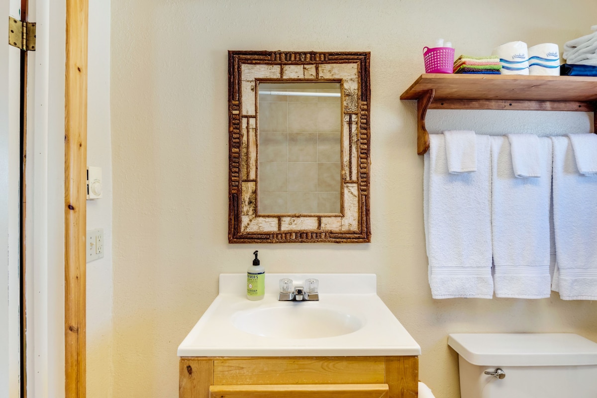 Welcome to the Adventure Haus- a two bedroom, two bath cabin located just outside of South Fork close to ATV trails, the Rio Grande River, and Wolf Creek Ski Area. This cabin has been designed to be your basecamp for adventure. Between the 4 decks attached to the cabin, log porch swing, and fire pit area with Adirondack Chairs, you will have no trouble finding a proper place to relax. You will also have access to the detached garage to safely store your gear out of the elements.