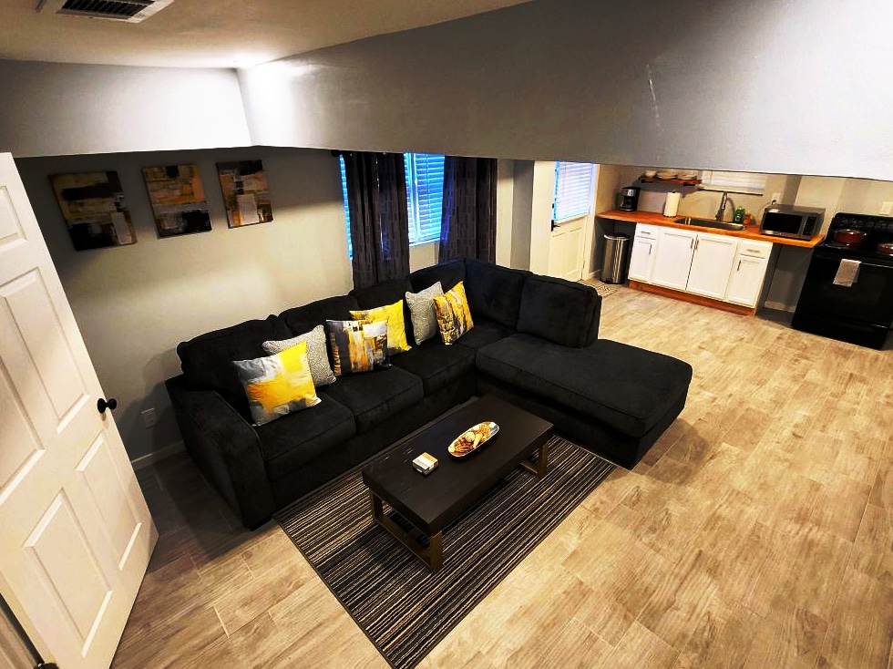This one-of-a-kind smart home has 3 rooms, sleeps 4 and it's own private outdoor space for smoking or just unwinding. Home automation controls lights, fans, curtains & more. Fully stocked kitchen if cooking is your thing with great restaurants in the area. Located within city limits, minutes to the airport & shopping. Great location for most concert venues & the best that Atlanta has to offer. Why settle for a hotel room when you can call The 3060 Guest House your Atlanta residence. No Parties!