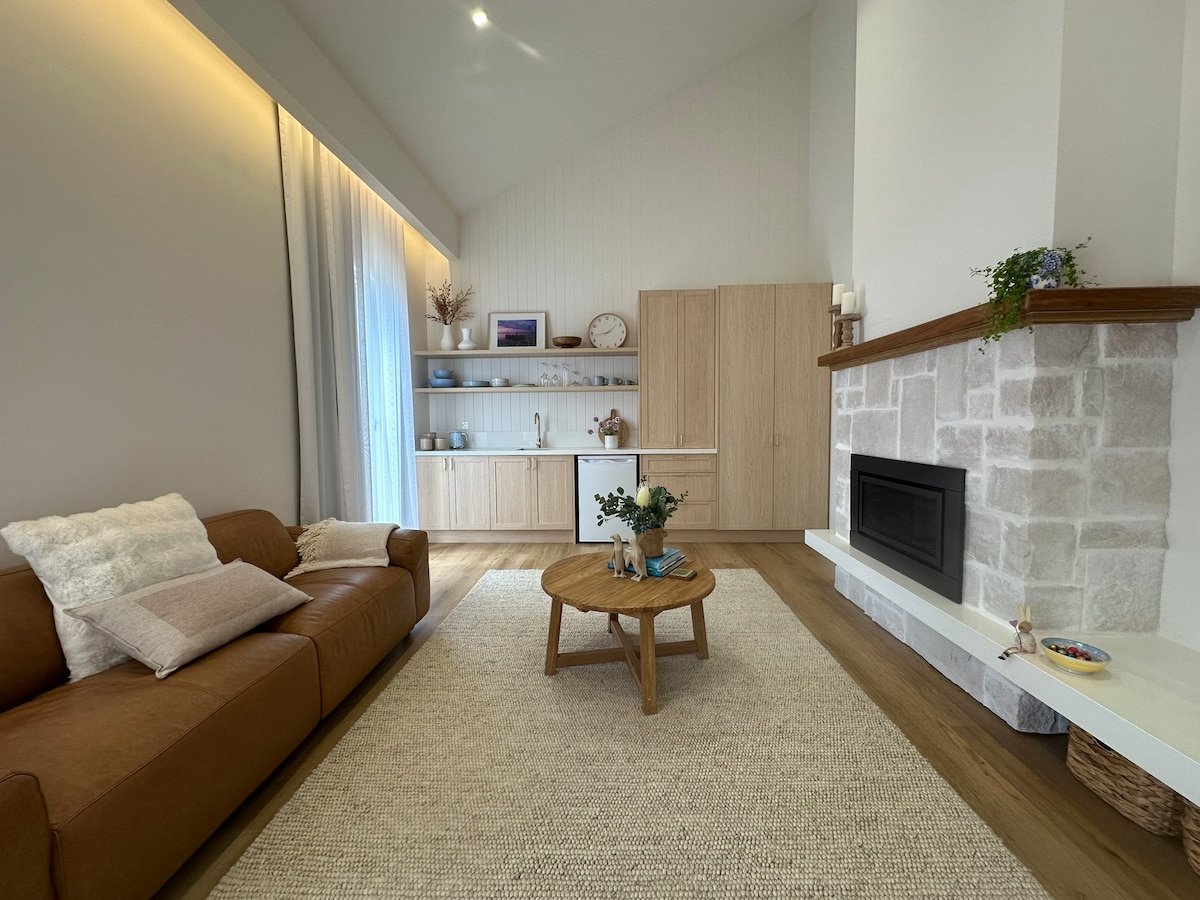 Escape and unwind at our 13-acre rural retreat, atop rolling hills with stunning coastal and farmland views. Soak up the country air and cosy in by the fire after a day exploring quaint villages, beautiful beaches, excellent wineries and eateries, art galleries, and live music, all just a short scenic drive away. Privately situated from the main farm house, and with it’s tranquil setting, the guesthouse is perfect for a weekend retreat for couples and solo travellers looking for some R&R.