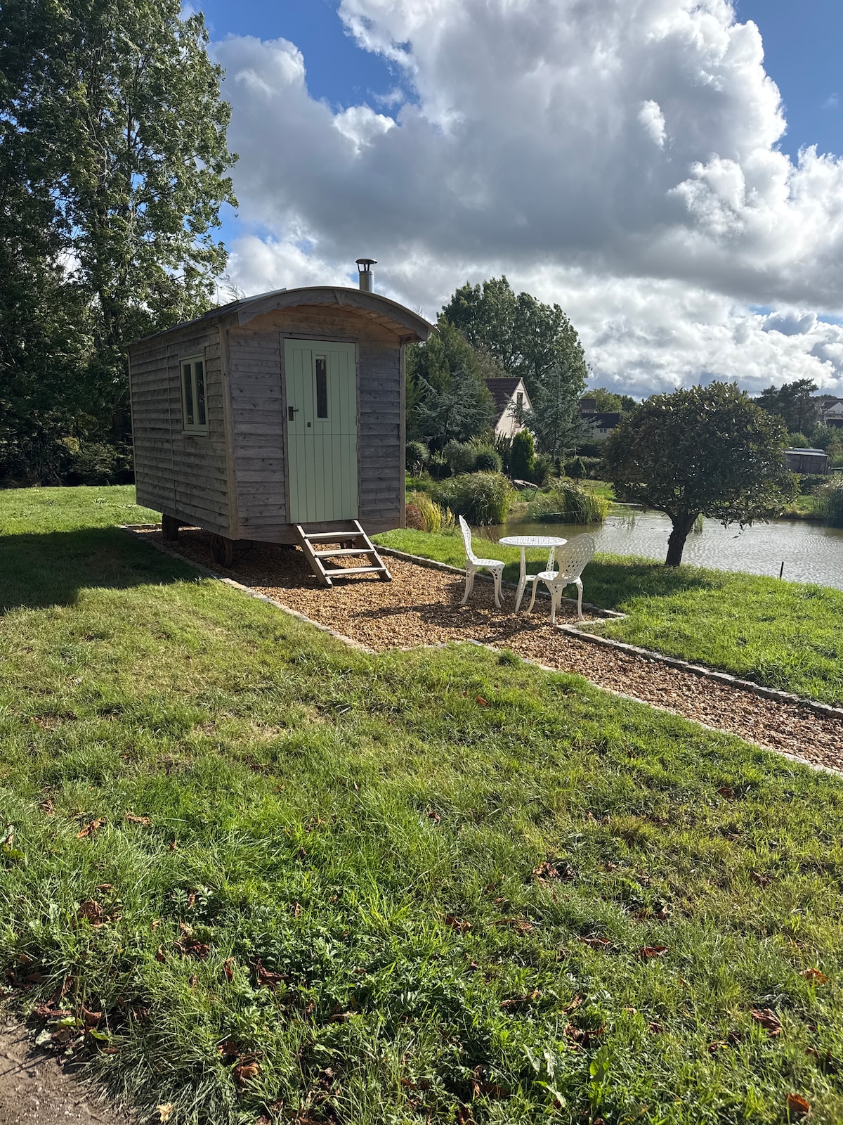 GERTIE - Gertie is our beautiful home built traditional shepherds hut and is ready and waiting for guests. She sleeps 2 people in a small double sized bed. Fitted with a kitchen containing cooker, hob, fridge/freezer, kettle and toaster. En-suite rain shower, Burlington loo, heated towel rail and stacks of hot water. Cosy up next to the log burner and enjoy the wood fired hot tub which has become a popular addition.