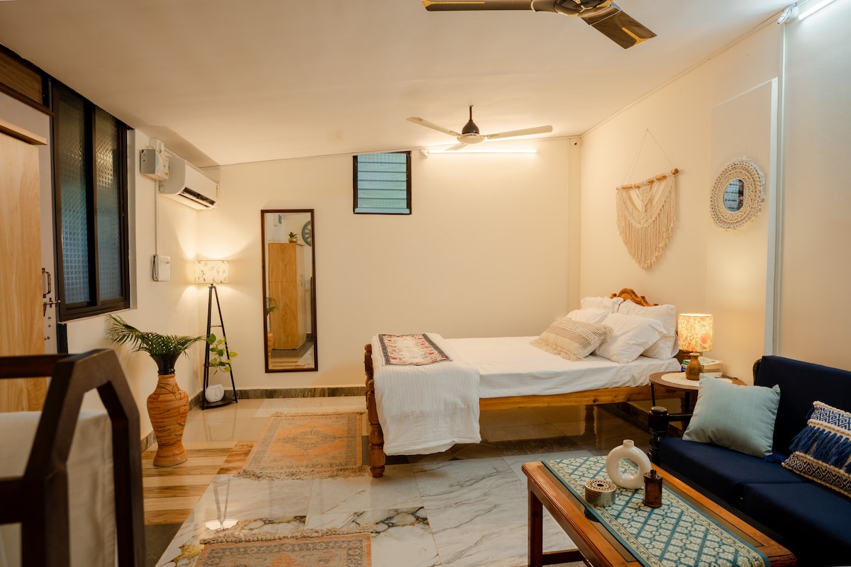 Welcome to Ancessaao's 🏡🌴- your authentic goan escape in Assagao, just 10 min away from Vagator & Anjuna Designed for slow living and intimate escapes, this cabin blends with charm with modern comforts, perfect for couples or solo travlers seeking relaxation and privacy. Key Features AC & Wifi ❄️| TV & mini fridge 🍺| Private Verandah & sunlit interiors 🛏️| Kitchenite (not kitchen)| Tea, coffee & milk sachets ☕| power backup ⚡| Laundry available| Gated Property 🚪| Parking inside 🅿️