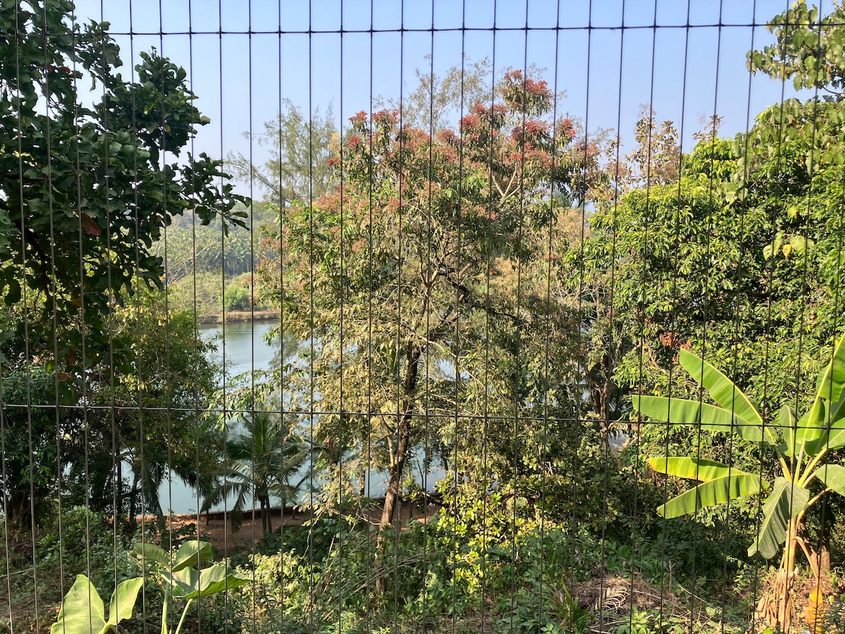 Cozy 2 bhk house with Chapora River View in Siolim, Goa Welcome to the new unit of Mogachestays.goa— where the quiet rhythm of Siolim meets the gentle luxury of sunlight, space, and peace. Tucked away on the 2nd floor, opens to two balconies surrounded by coconut trees and the peaking views of the Chapora River. Comes with AC bedrooms, a fully equipped kitchen, washing machine, Wi-Fi, and a warm living area. With easy parking and just 15 minutes from beaches