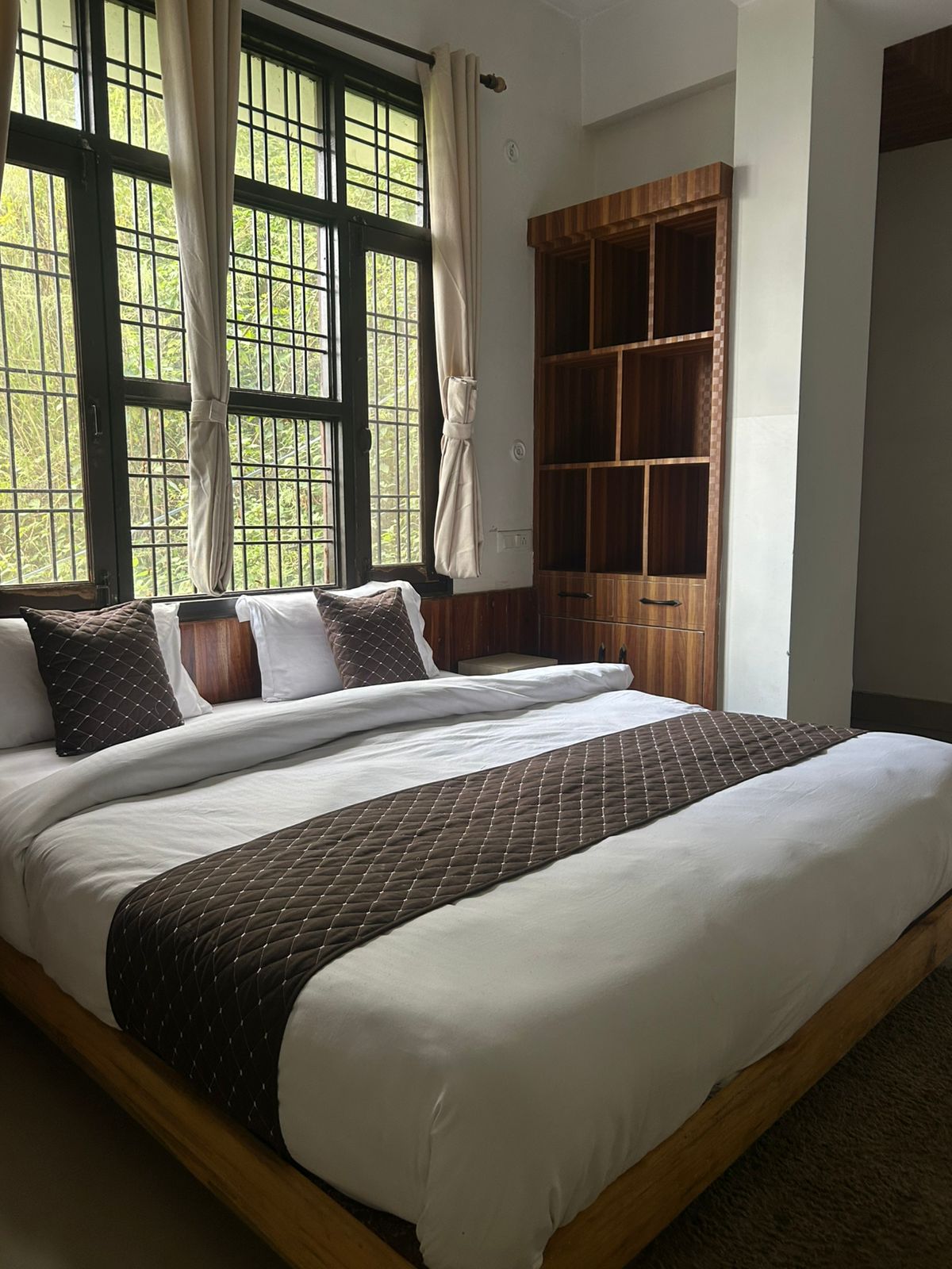 Wake up to crisp mountain air and sweeping hill views in this enchanting 1-BHK apartment. Sunlit living space, kitchenette, dining space, plush bedding, and a private balcony create a serene sanctuary to relax, reflect, and soak in nature. Thoughtful touches, cozy corners, and lush surroundings turn every moment into a sensory escape- perfect for couples, solo travelers, or small families seeking a peaceful, unforgettable mountain retreat.