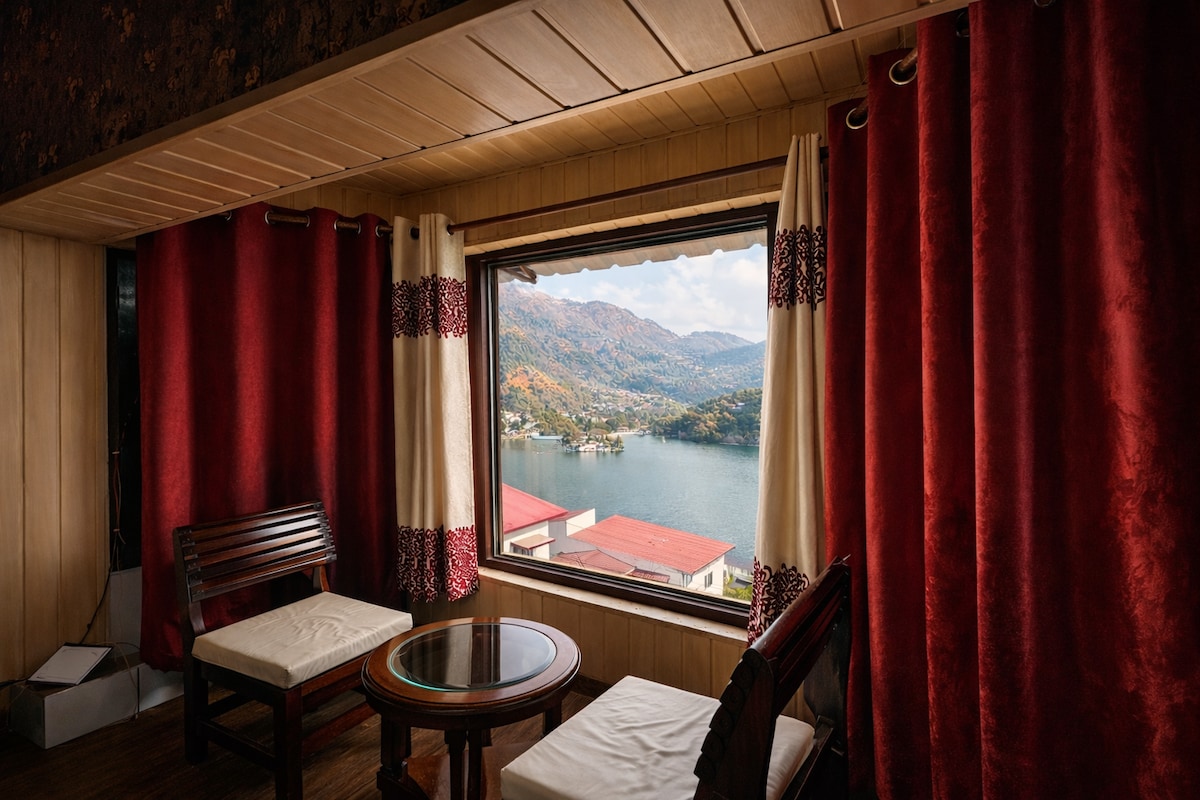 In the city center of Bhimtal, you will get 1 BHK with a 360-degree lake view, which has a kitchen, a hall (with 5 Seating Sofa with table + Sofa cum Bed (6x6) + workspace), and a bedroom (6x6 Bed) with an attached bathroom. There is a lake view from both the hall and bedroom. You can enjoy a 360-degree lake view on the balcony. This place is completely on the road and will make you feel like heaven. It is a very peaceful and centrally located place.