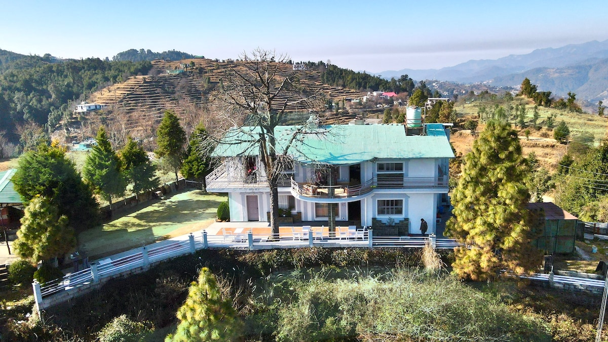 Kainchi: 19 km Nainital : 22 km Mukteshwar: 29 km Bhimtal lake: 8.3 km Pangot: 39 km Naukuchiatal: 13 km Sattal: 14 km Nestled in a peaceful valley with hills on one side and a gentle river stream just a short walk away, our home is a charming 2BHK villa designed for families, couples, and small groups seeking a serene getaway. Our white, British-style bungalow is located conveniently along the main highway—making it easy to find—yet offers a quiet escape surrounded by nature.