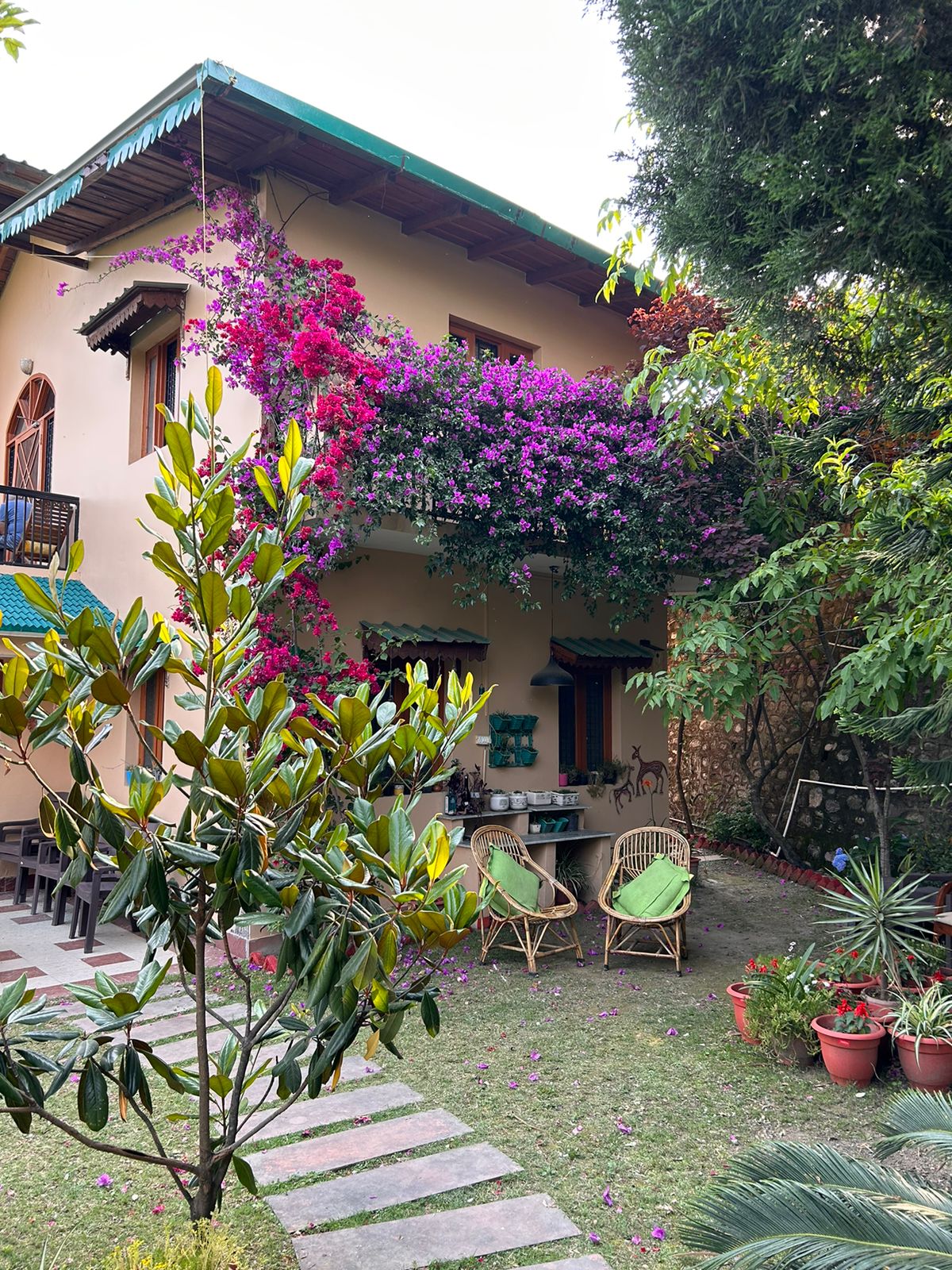 ''Blessing' is a thoughtfully designed artisanal villa in Bhowali, nestled in the foothills of Kumaon on Bhimtal Road, at an altitude of 5600 ft above msl. Full of curated art, cozy nooks, and serene views. It offers kitchens, car parking with EV charging (3kva Level 1) on payment, and other amenities. Great for a quiet getaway or working remotely in nature. It is ideal for an escape from the city hustle, yet be just 10–20 min from Nainital, Kainchi Dham, Bhimtal, Naukuchiyatal, Sattal & Ramgarh