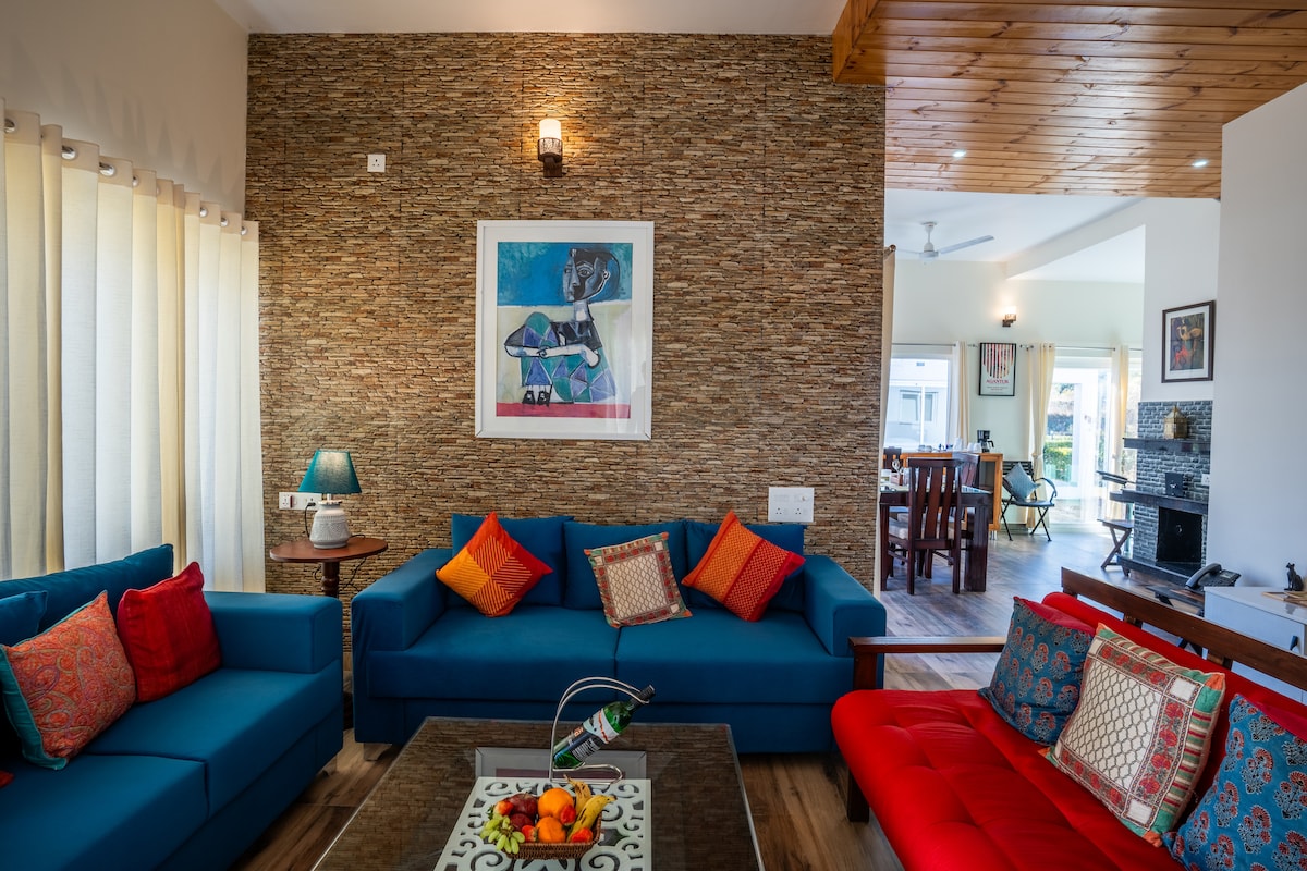Milele means “forever” in Swahili-a word that captures timelessness, a sense of enduring beauty and abundance.Tucked away in the serene village of Basa near Bhimtal, Milele is a 4-bedroom retreat designed for those who seek more than just a getaway. It’s a space to breathe, reflect, and truly connect. From the massive windows, you can watch the clouds drift by and see the river winding through the valley below. Every moment here feels expansive and unhurried.