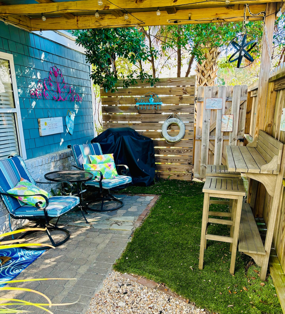 Welcome to our exquisite boho bungalow, nestled in the heart of Savannah, GA, just a leisurely stroll from the picturesque Forsyth Park. This enchanting retreat seamlessly blends the rich history of its original 1800s architecture with the finest modern amenities. Our home invites you to indulge in the private outdoor oasis. Enjoy the tranquility of tropical plants, a charming stone bench, a cozy firepit, and a well-appointed grill, creating an ambiance that exudes relaxation.
