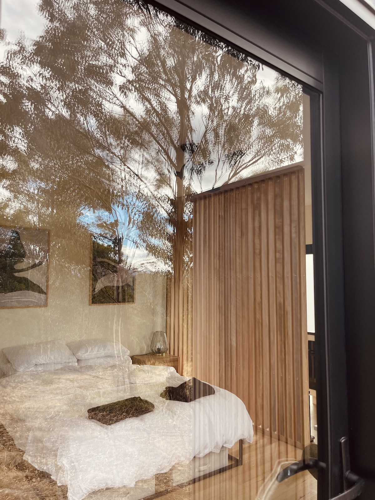 An epic location at the end of a private road is a fully self-contained studio designed by renowned Tasmanian architects Circa Morris-Nunn . Beautiful and wild, historic and sensitive to its surrounds. The Studio is edged by Pittwater Estuary and the Coal River. A remote hideaway just 30 mins from Hobart and 15 mins to Richmond and Coal River wineries and restaurants.. Relax and unwind on your own private beach. Enjoy the art, some of which has been made in the studio itself.