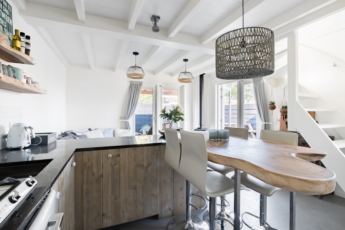 Dit appartement biedt veel privacy met een eigen beschutte tuin en ingang. Beneden is een gezellige woonkamer met open keuken en de openslaande deuren zorgen voor veel licht en ruimte. Naast de vloerverwarming is er een knus houtkacheltje. Via een open trap betreed je het slaap gedeelte, waarin 1 ruim 2 persoonsbed en 2 losse single bedden staan, gedeeltelijk afgeschermd door wanden. Voor het meebrengen van uw hond rekenen we 15 euro contant bij aankomst. Alle ruimtes zijn afgewerkt met stijlvolle natuurlijke materialen. De gehele begane betonvloer is voorzien van vloerverwarming. De sfeervolle woonkamer heeft een bankstel, houtkacheltje en TV met Netflix ( geen TV aansluiting). De keuken wordt deels afgescheiden door de boomstam keukentafel en granieten aanrechtblad. De keuken biedt de mogelijkheid om te koken met retro Smeg apparatuur en is voorzien van gasstel, koelkast, vaatwasser, combi-magnetron en waterkoker. De badkamer ademt een Zuidelijke sfeer met een vloer van pebble stones en rivierstenen waskom. In de afgesloten wasruimte staat een wasmachine en stofzuiger. Er is een aparte toilet ruimte. De slaapzolder is verdeeld in twee gedeeltes, met aan de ene kant van de wand het luxe twee persoonsbed en aan de andere kant de twee losse eenpersoonsbedden. De ruimte met de houten vloer en bedden voelt direct ontspannen aan. Het appartement ligt op loopafstand van het oude centrum, waar een gezellige dorpskern met winkeltjes is. Met de fiets ben je binnen 10 minuten op het strand. Het appartement is volledig nieuw gebouwd en is gezellig en heel licht qua sfeer, je voelt je snel thuis. Je kunt zelf volledig koken, als je dat wilt. Zodra je binnen stapt krijg je een vakantie gevoel, aangezien de inrichting een relaxte beach stijl is. De afwerking is heel luxe. Gasten van het appartement mogen tegen half tarief meedoen met de yoga lessen van Yogastudio Ouddorp. De studio ligt naast het appartement. De gasten hebben een eigen prive tuin, die volledig word afgeschermd door een schutting. In de tuin staat een gezellig zitje, relax stoelen en grote picknick tafel. Mijn vriend en ik zijn beschikbaar per mail, whats app en telefonisch. Het pittoreske Ouddorp is een klein badplaatsje aan zee met een gezellige dorpskern en een zandstrand van maar liefst 17 kilometer lang. De natuur is prachtig en de omgeving leent zich bij uitstek om er te surfen, fietsen en wandelen. Het centrum is letterlijk op loopafstand. Een heerlijke echte bakker zit om de hoek. De supermarkten zijn ook heel dichtbij. Rondom de kerk zijn gezellige winkeltjes en terrasjes. Het strand is wijds en heerlijk met een aantal gave beachclubs. De bushalte is aangrenzend aan de tuin. Parkeren is gratis op de Stationsweg, direct naast het appartement.