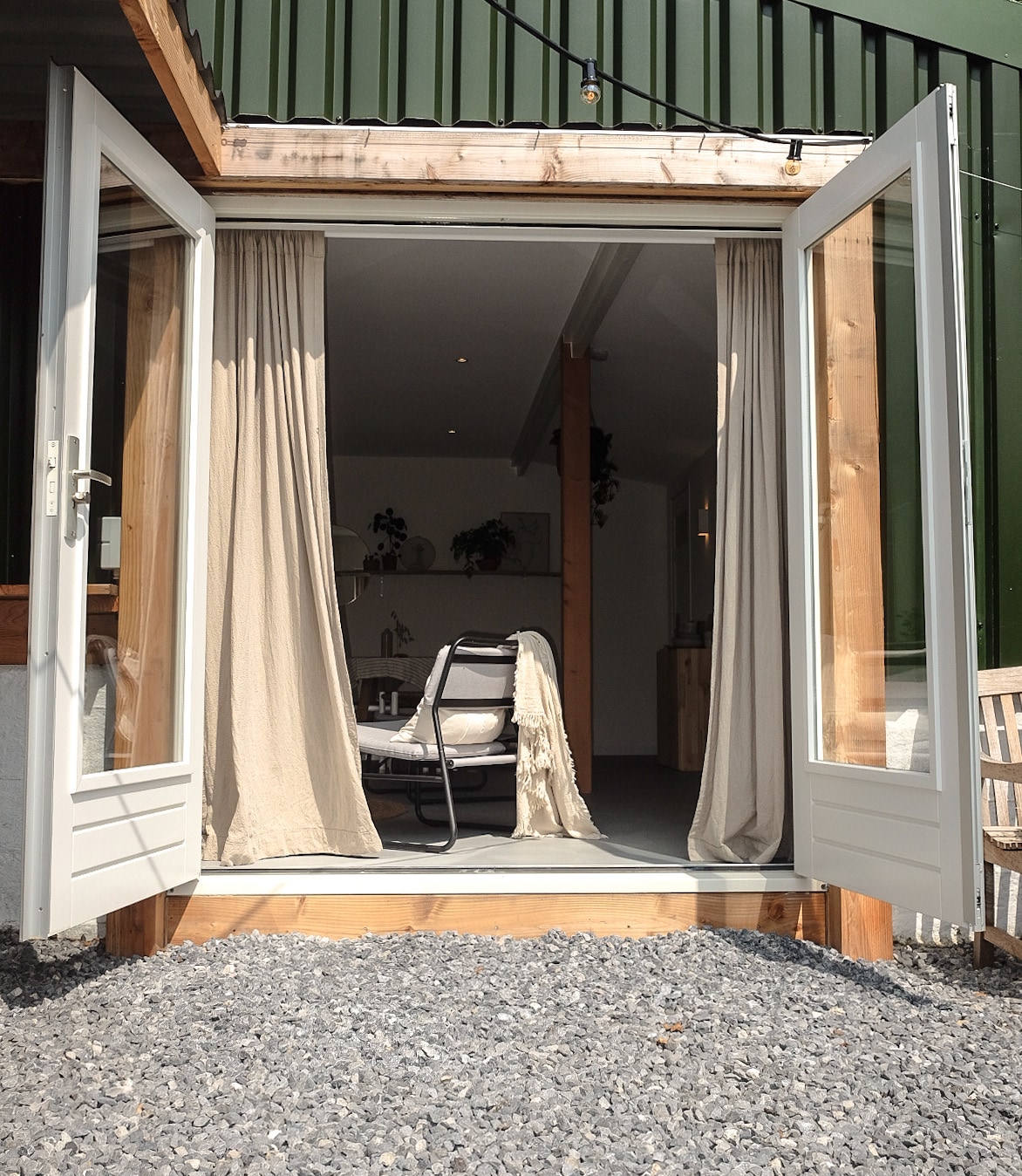 Our accommodation is stylishly furnished and feels like a real holiday home. The beach-boho atmosphere immediately gives you a feeling of sun, sea and laid back living. It is accessible through the back area of our house, which ensures a safe feeling. Close to beach (200m) with lounger rental and surf school, sea and dunes. The center is within walking distance (500m) and the supermarket is just around the corner. Centrally located near major cities and easy to reach by public transport.