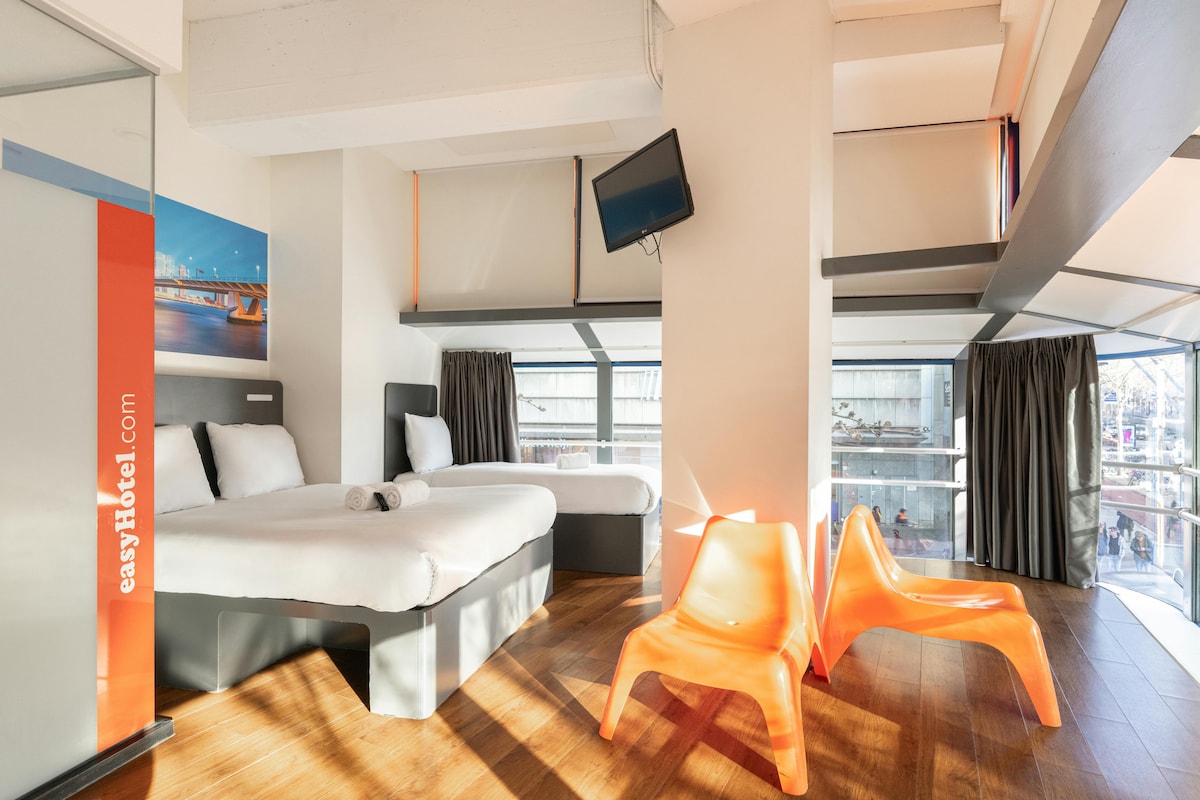 This bright and spacious family room comes with one double and two single beds, air-conditioning, wall-mounted TV and free Wi-Fi. All rooms in easyHotel Rotterdam offer comfort and cleanliness at a budget price to allow you to spend time exploring our great city outside of your hotel room. Room size 20sqm. Please note that 6.5% Rotterdam city tourist tax is not included in the Airbnb price and must be paid directly to the hotel.