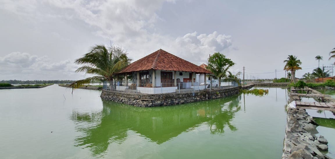 Tucked away in the back waters of a beautiful fishing village called kuzhipally. Living waters stands surrounded by back waters of kerala on three sides. It is a perfect hide away property just 45 minutes drive from cochin city and waking distance to the enchanting kuzhipally beach. Its a complete private home with the charm of rustic Kerala architecture and flair of bohemian interiors.