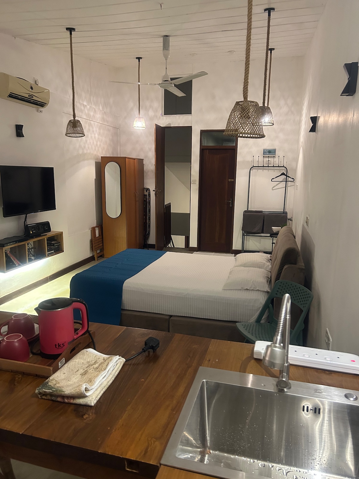 Enjoy a stylish stay in the heart of Pondicherry, Everything you need—beaches, shops, and restaurants—is within a 5 to 10-minute walk. Close to the French Quarter, Promenade Beach, markets, and cultural landmarks. Comfort: High-speed Wi-Fi, air conditioning, and a fully equipped kitchen. Loved for Design & Cleanliness: Guests appreciate the stylish decor and spotless space. Home Cinema: Enjoy movie nights with a projector and screen. Central loft—perfect for relaxing after a day of exploring