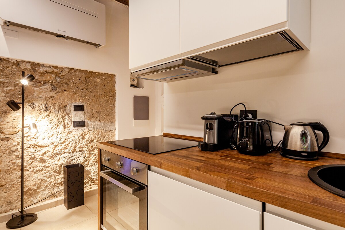 L’appartamento, con ingresso indipendente è situato nel centro storico ed è totalmente ristrutturato. Curato nei minimi dettagli, il loft è progettato per esaltare il contrasto tra antico e moderno, con pareti in pietra viva e travi a vista che si fondono nello stile industrial chic. Lo spazio, dotato di ogni comfort dispone di cucina, tv, macchina del caffè, WiFi fibra Una vasca idromassaggio, all’interno di una volta a piè del letto regala agli ospiti momenti di relax.
